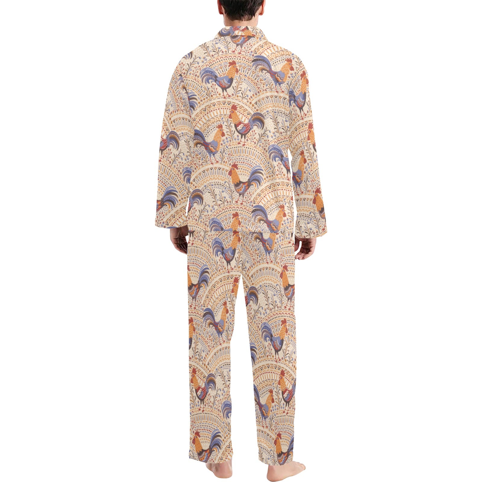Cute rooster chicken cock floral ornament backgrou Men's Long Pajama Set