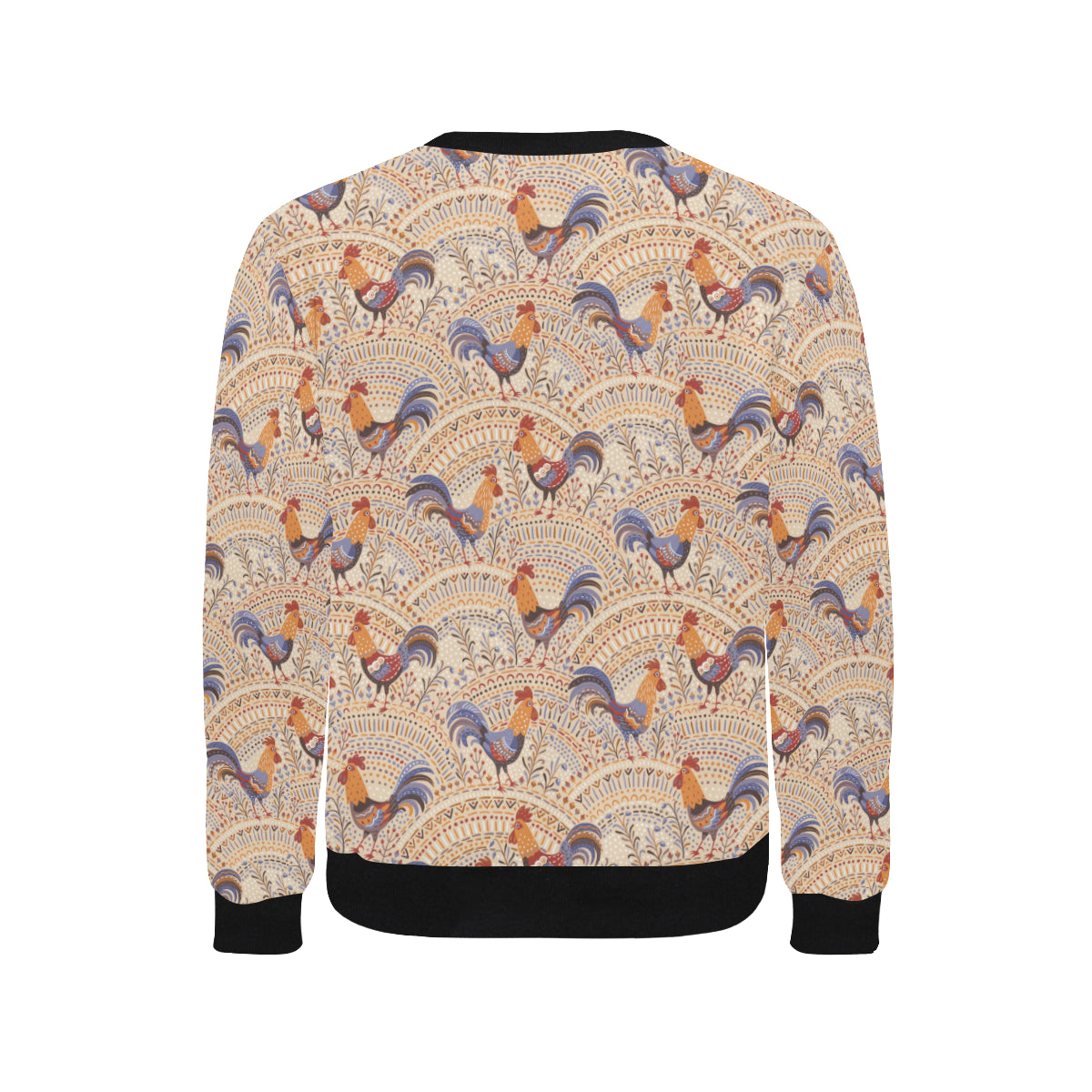 Cute rooster chicken cock floral ornament backgrou Men's Crew Neck Sweatshirt