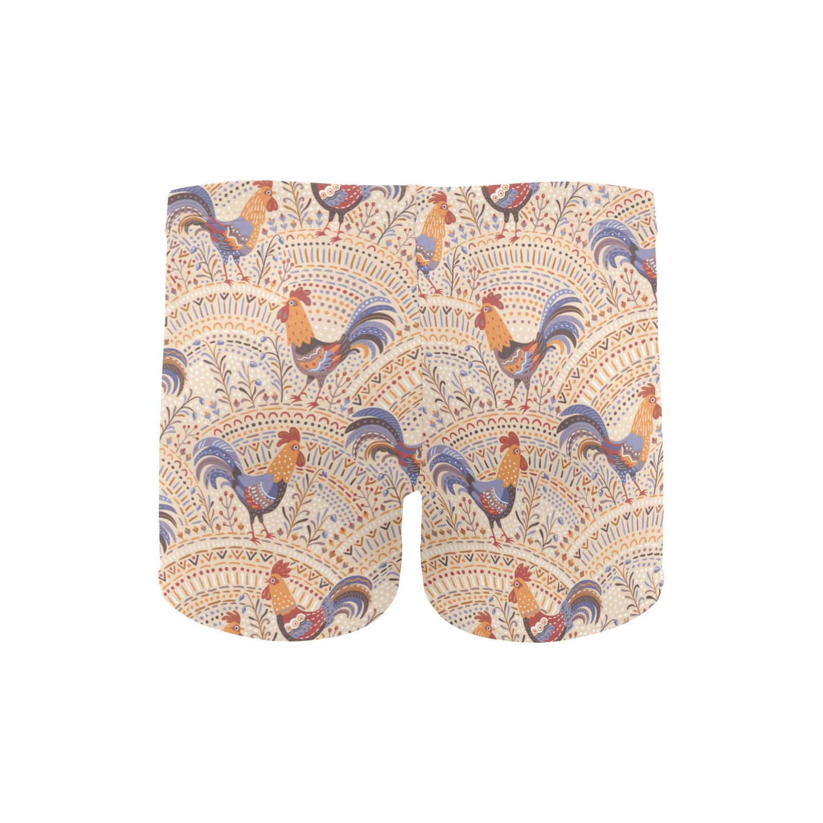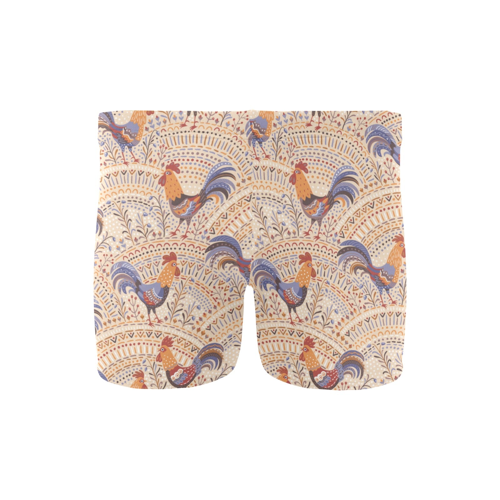 Cute rooster chicken cock floral ornament backgrou Men's Swimming Trunks