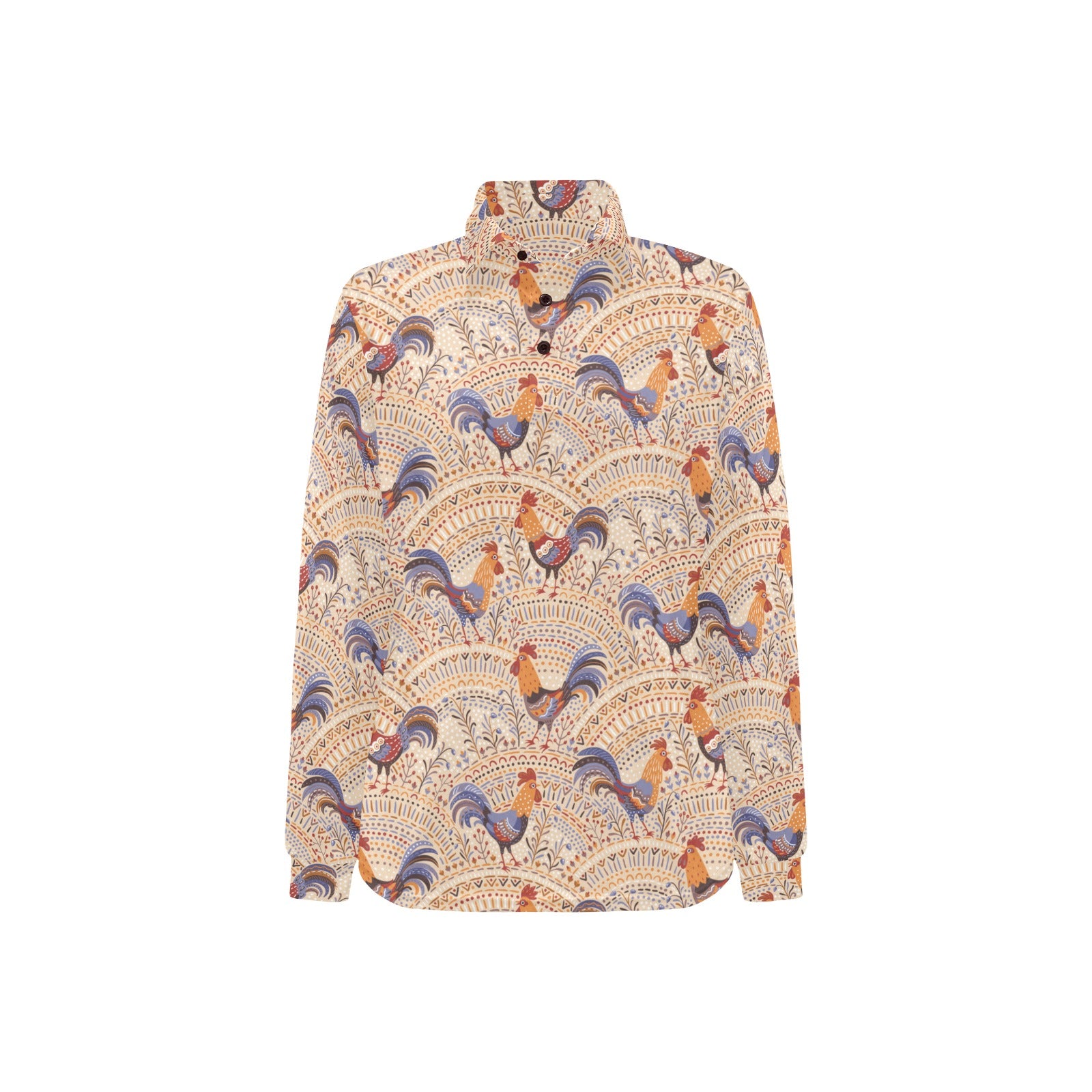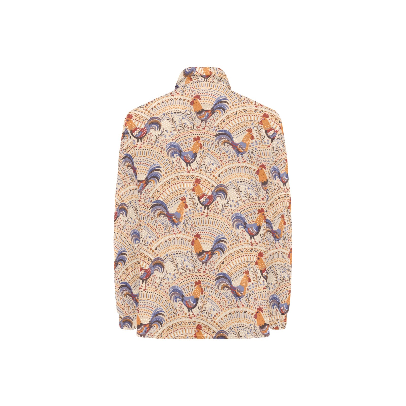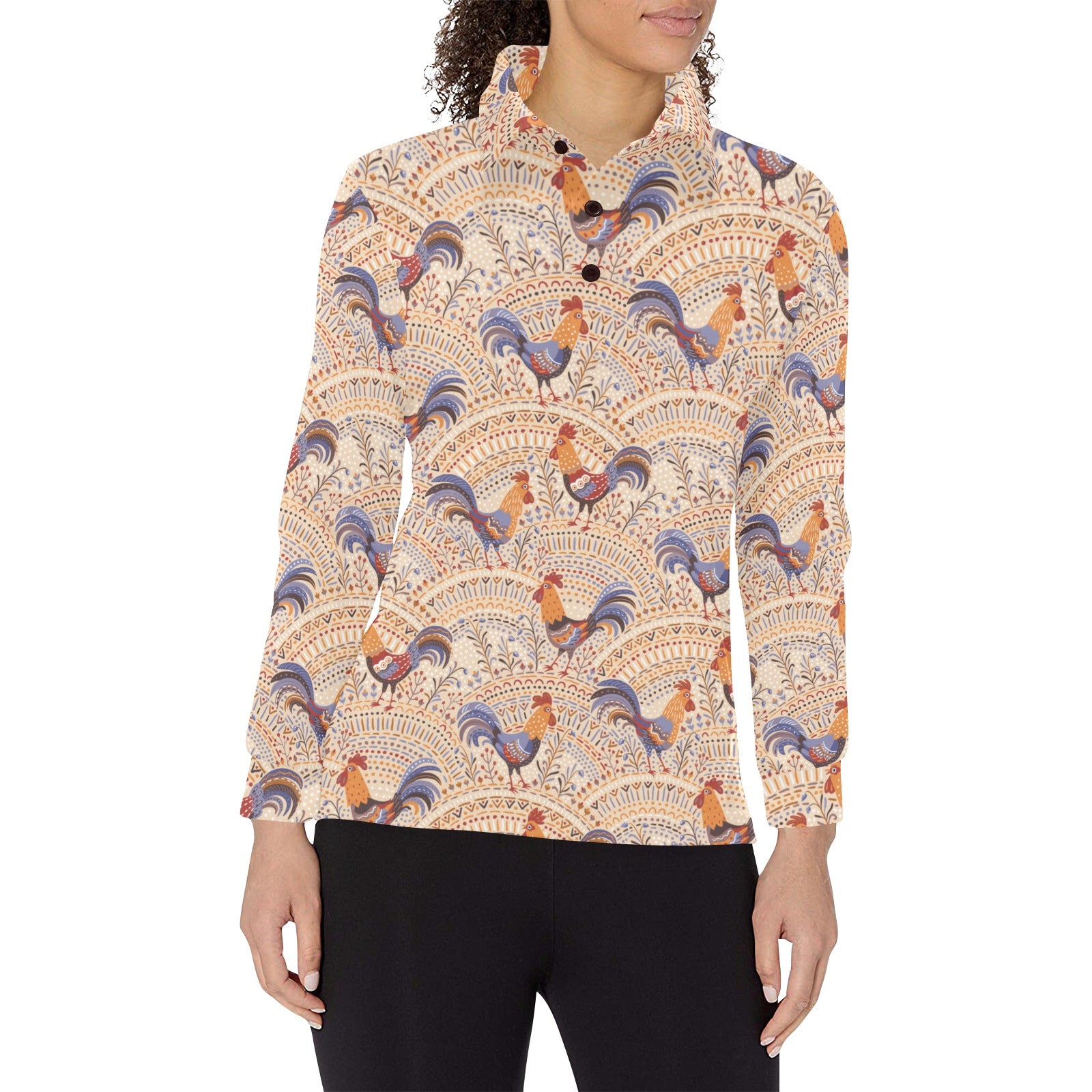 Cute rooster chicken cock floral ornament backgrou Women's Long Sleeve Polo Shirt
