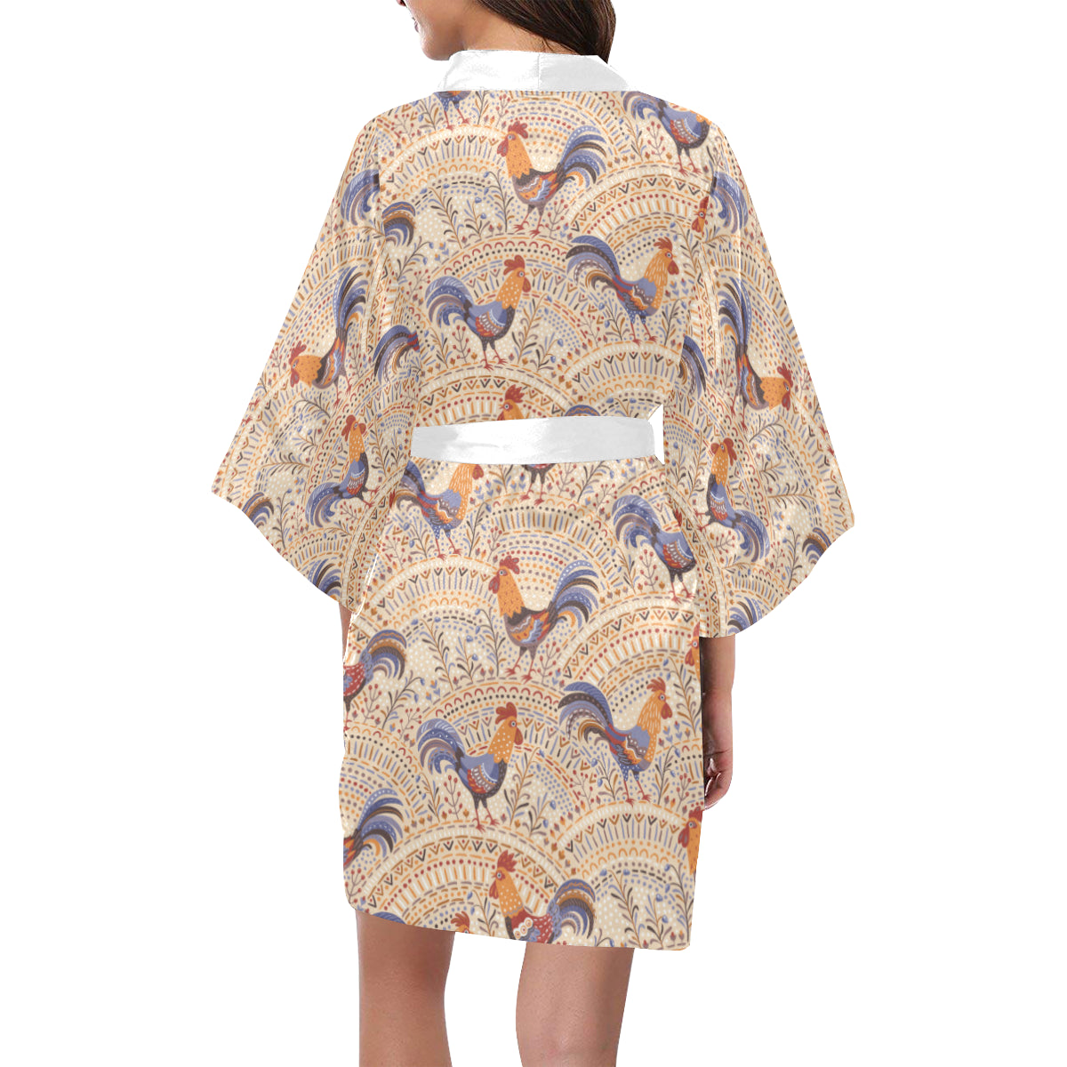 Cute rooster chicken cock floral ornament backgrou Women's Short Kimono Robe is a uniqued design and limited item. It made to order, hand printed, and sewn with love in our factory.