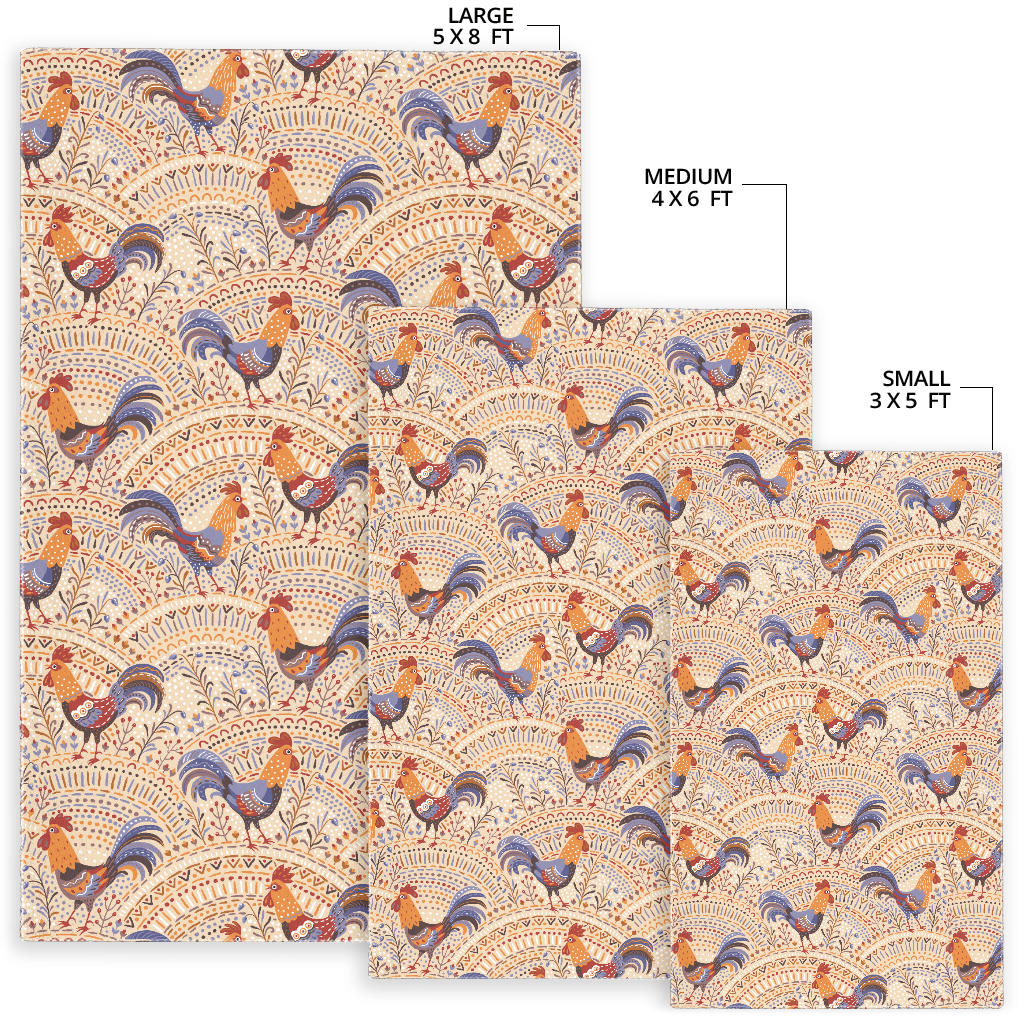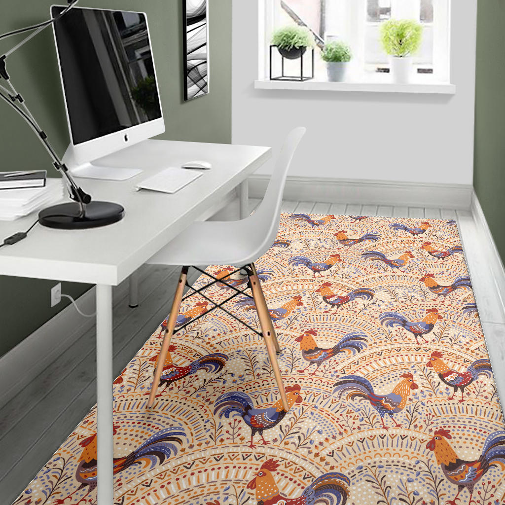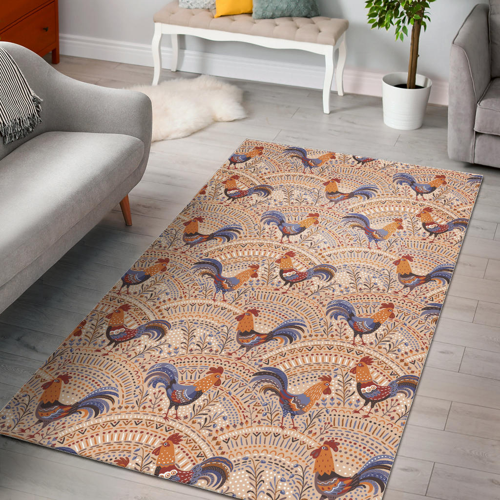 Cute rooster chicken cock floral ornament background Area Rug is a uniqued design and limited item. It made to order, hand printed, and sewn with love in our factory.