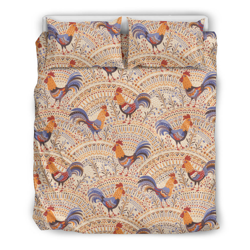 Cute rooster chicken cock floral ornament background Bedding Set is a uniqued design and limited item. It made to order, hand printed, and sewn with love in our factory.