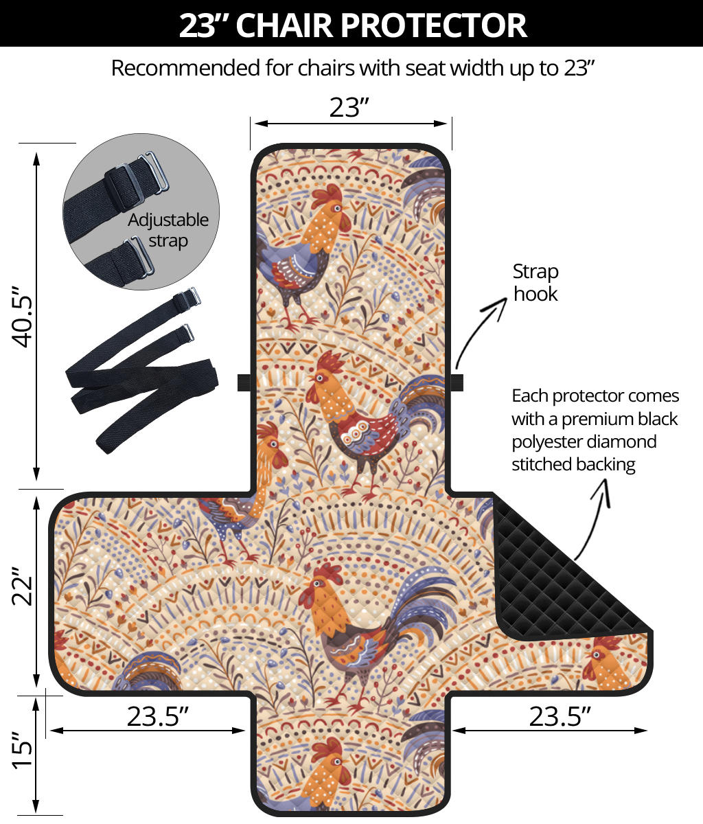 Cute rooster chicken cock floral ornament background Chair Cover Protector