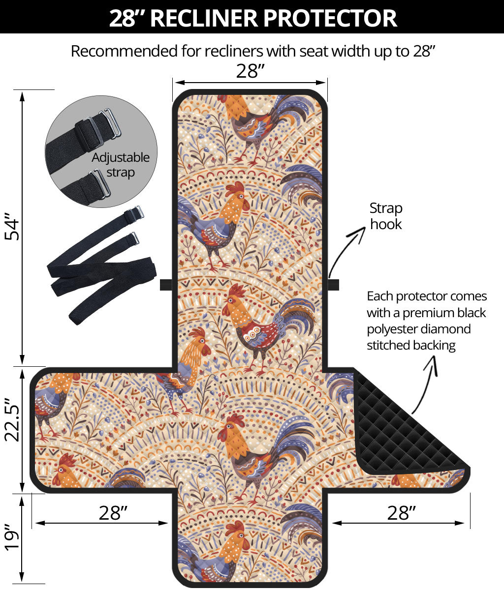 Cute rooster chicken cock floral ornament background Recliner Cover Protector
