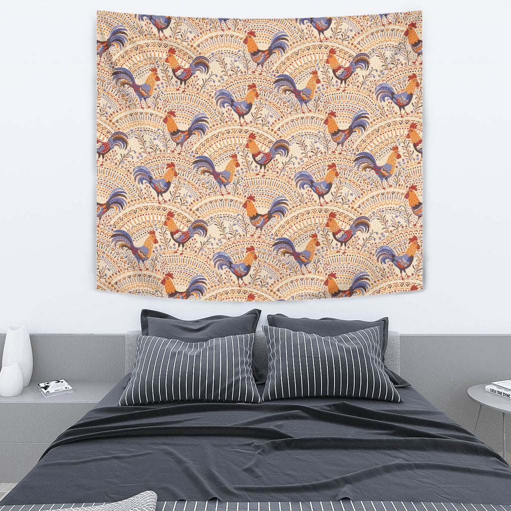 Cute Rooster Chicken Cock Floral Ornament Background Wall Tapestry