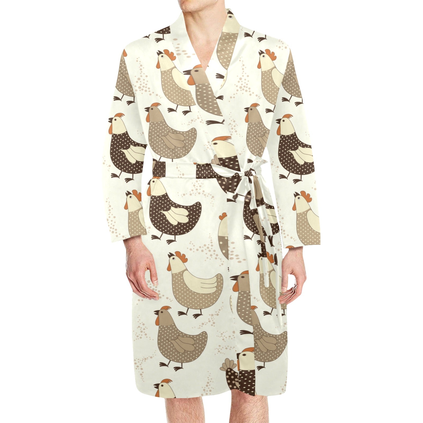 Cute rooster chicken cock Men's Long Sleeve Belted Night Robe