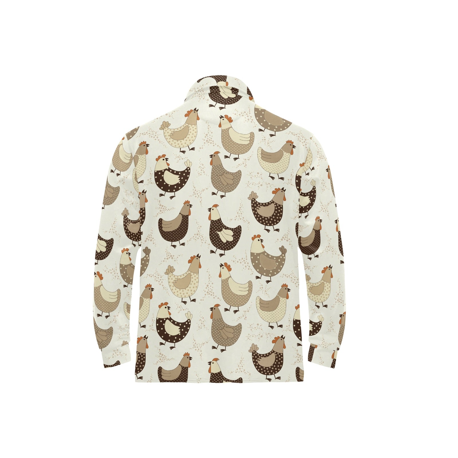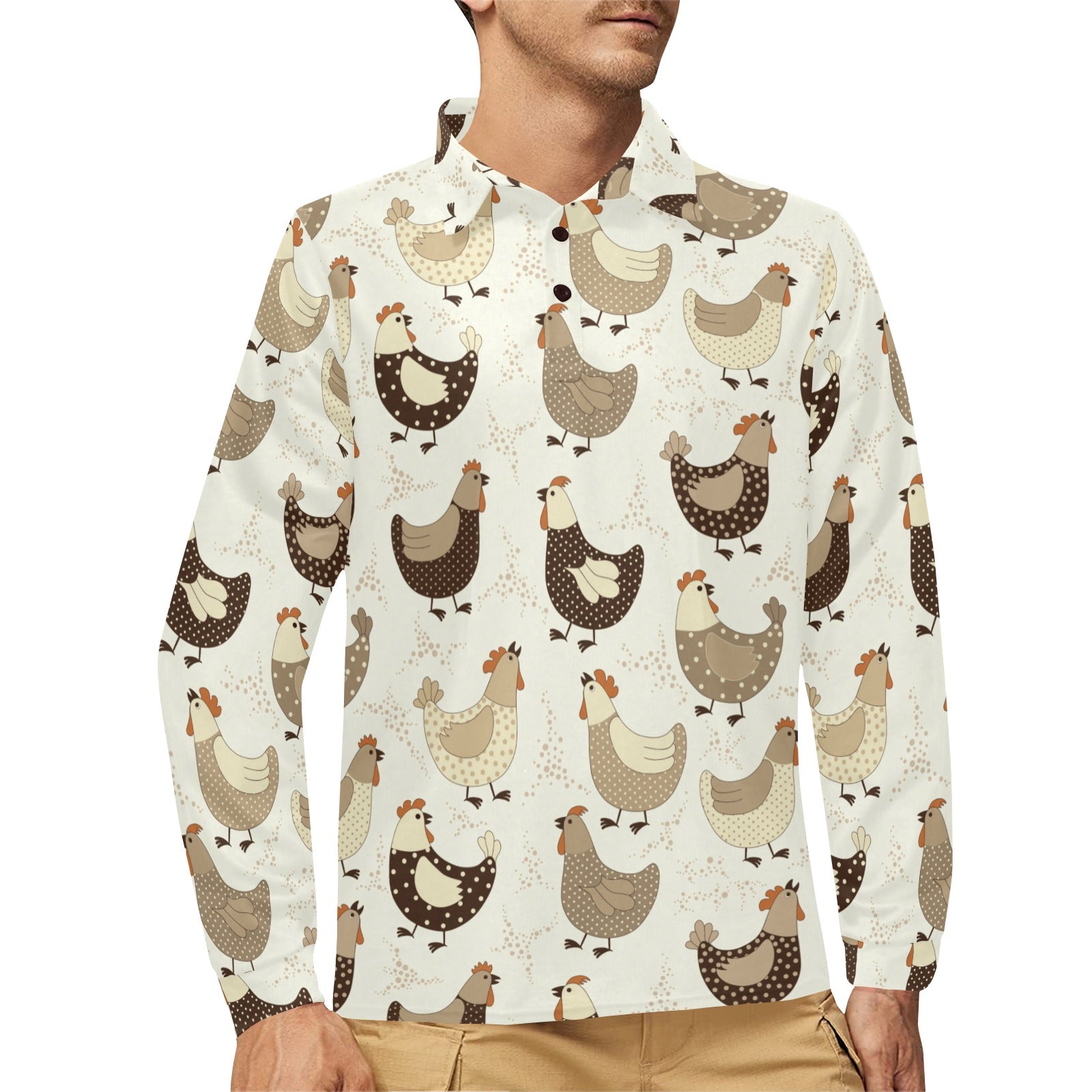 Cute rooster chicken cock Men's Long Sleeve Polo Shirt