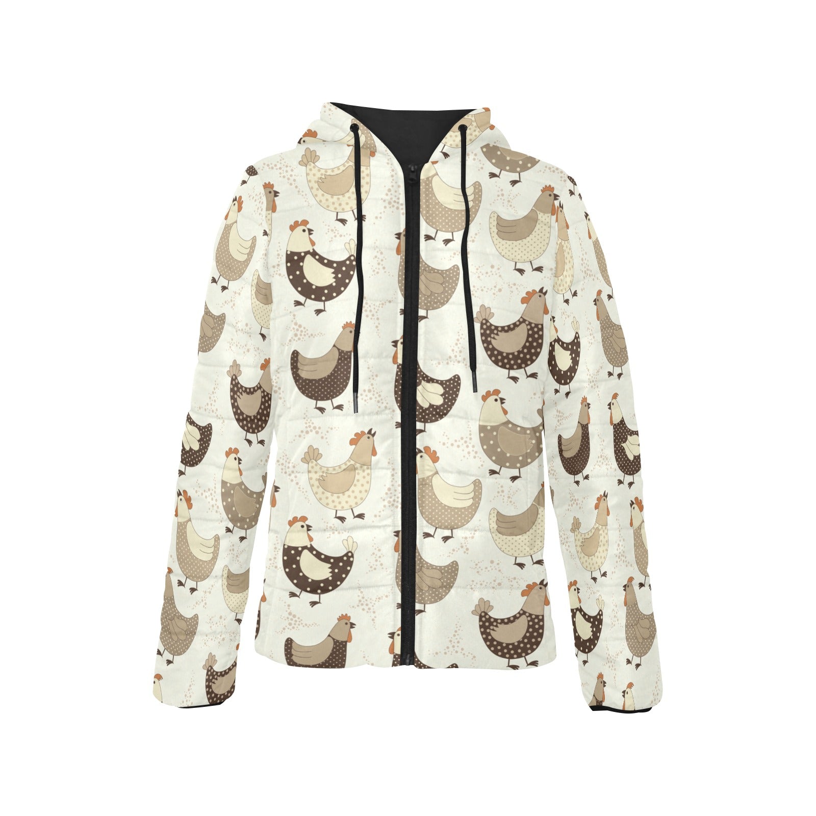 Cute rooster chicken cock Women's Padded Hooded Jacket