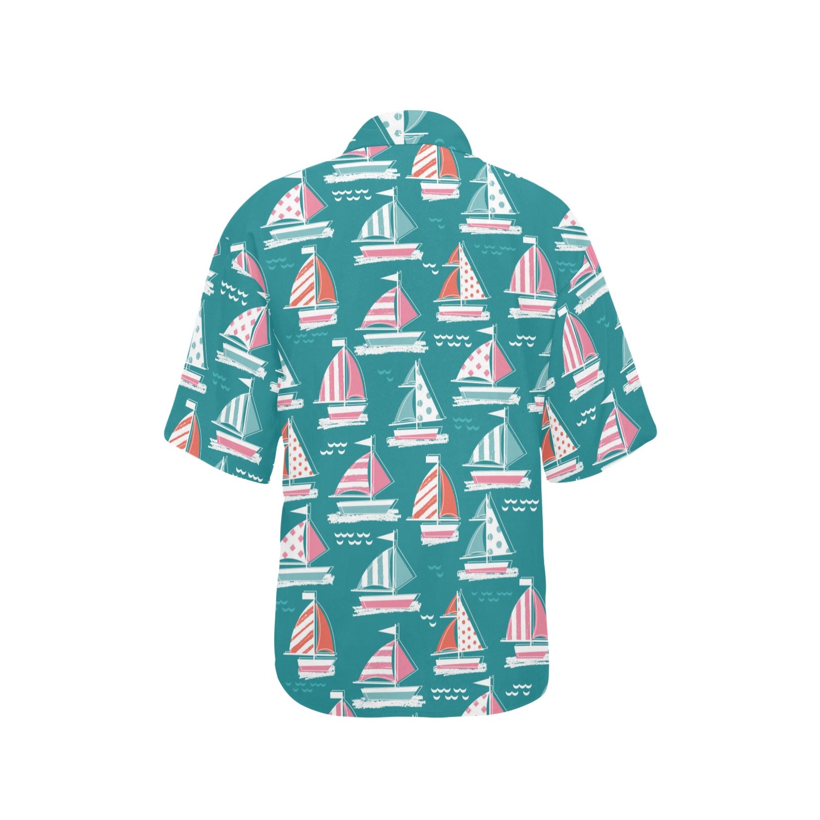 Cute sailboat pattern Women's All Over Print Hawaiian Shirt