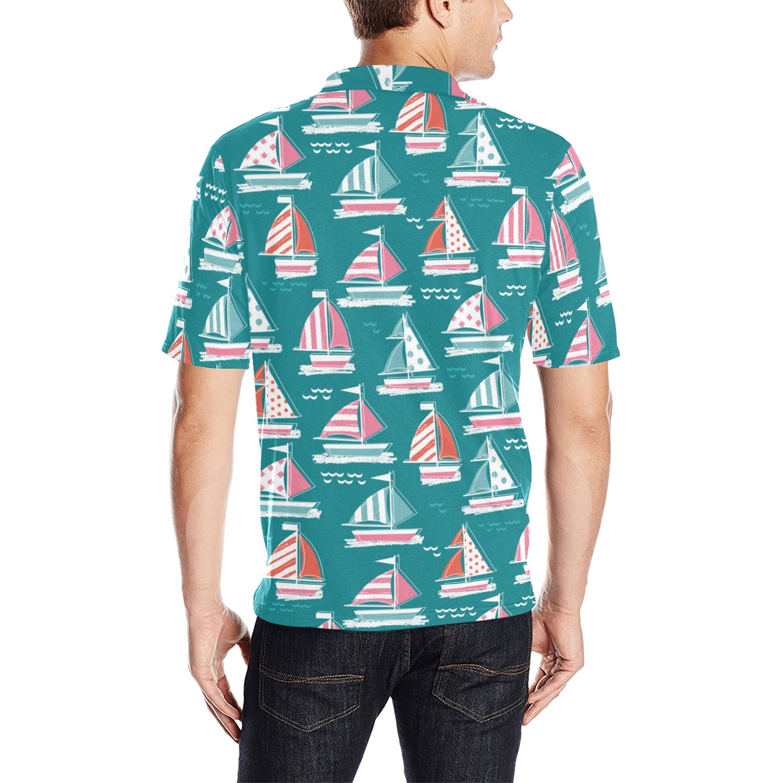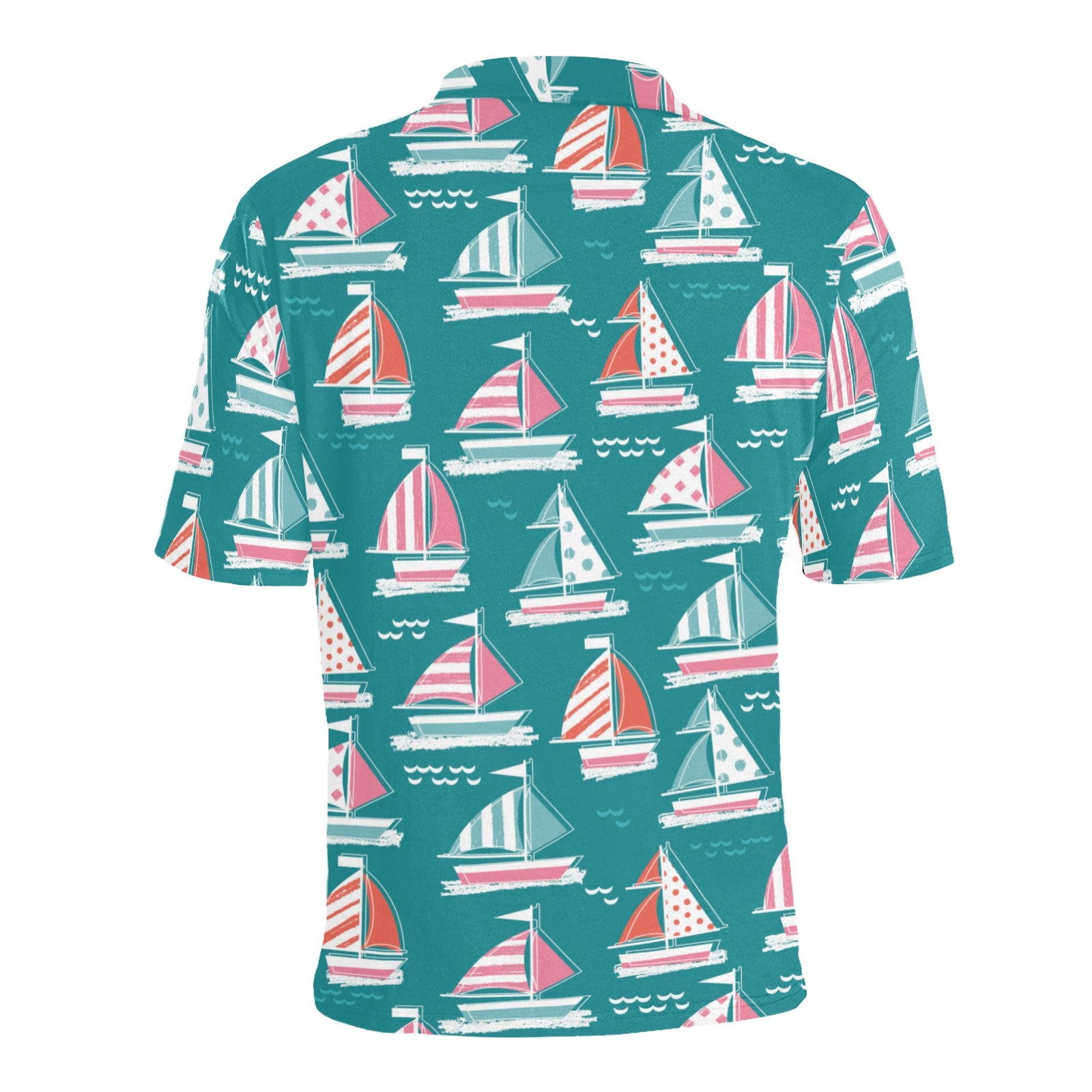 Cute sailboat pattern Men's All Over Print Polo Shirt