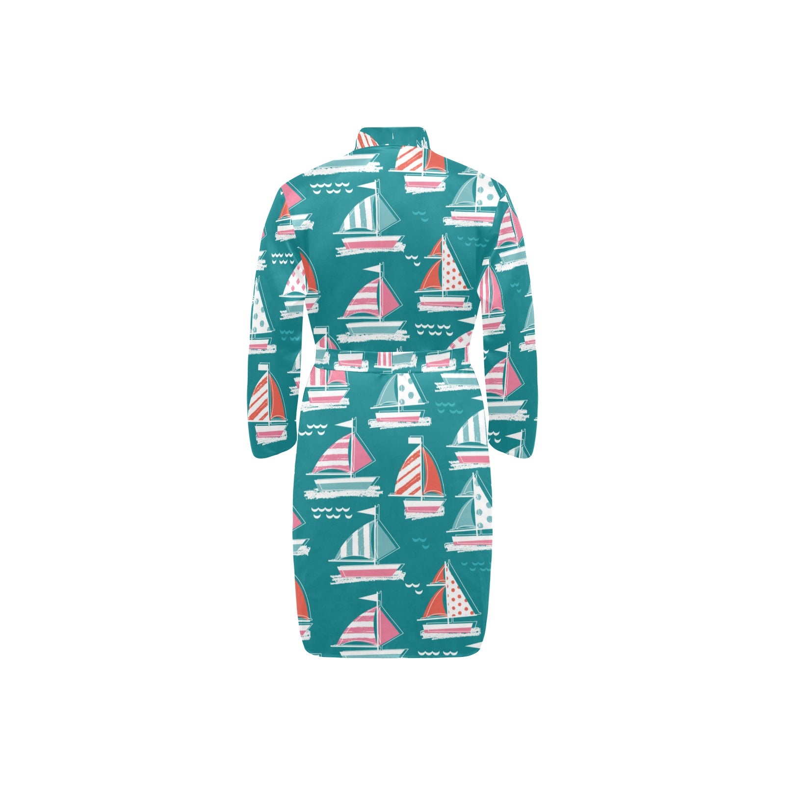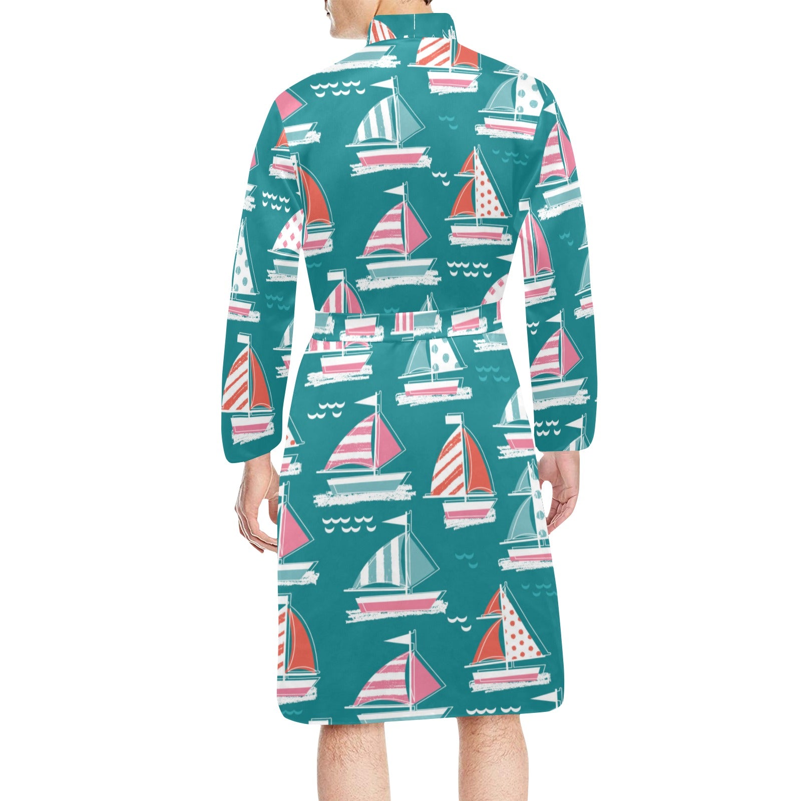 Cute sailboat pattern Men's Long Sleeve Belted Night Robe