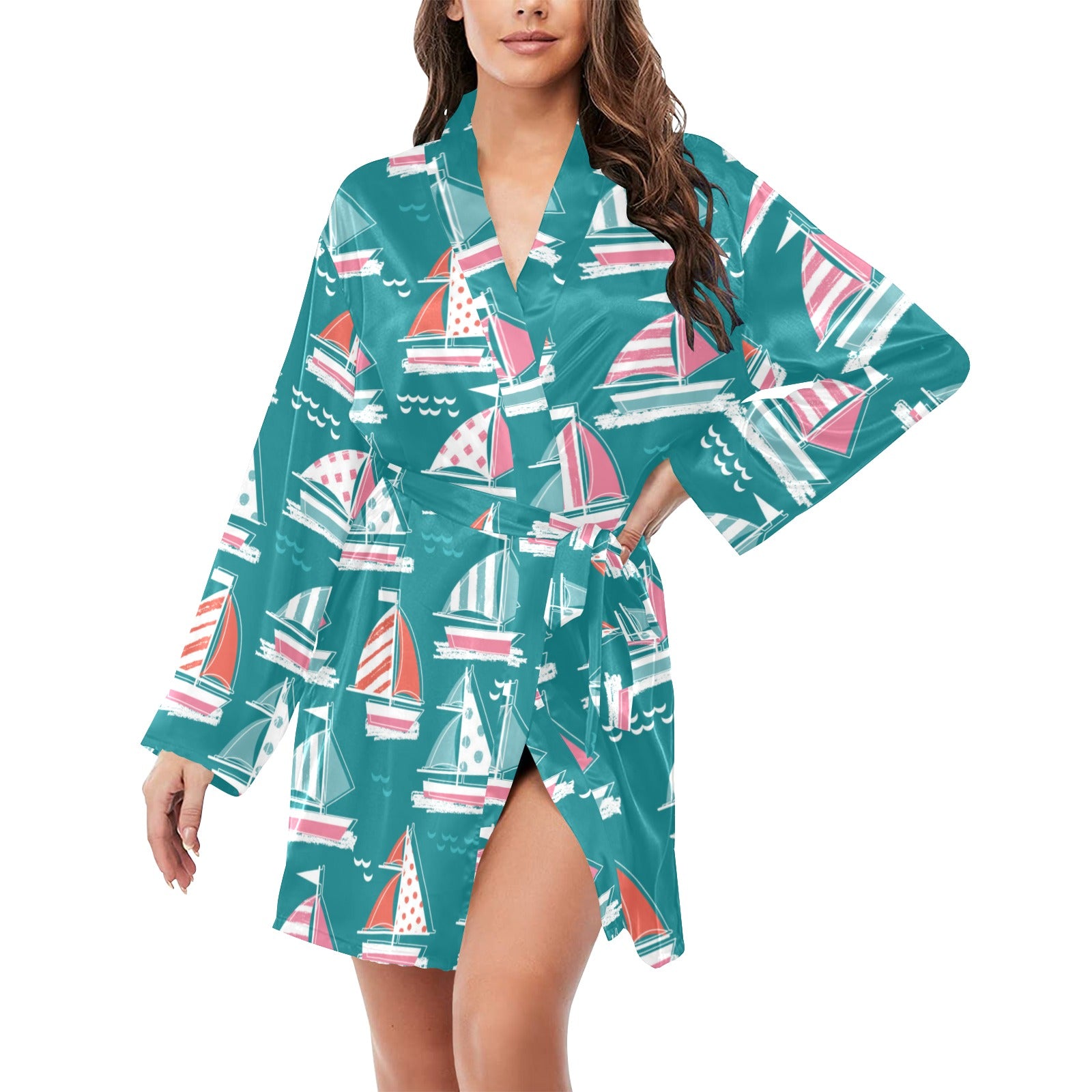 Cute sailboat pattern Women's Long Sleeve Belted Night Robe