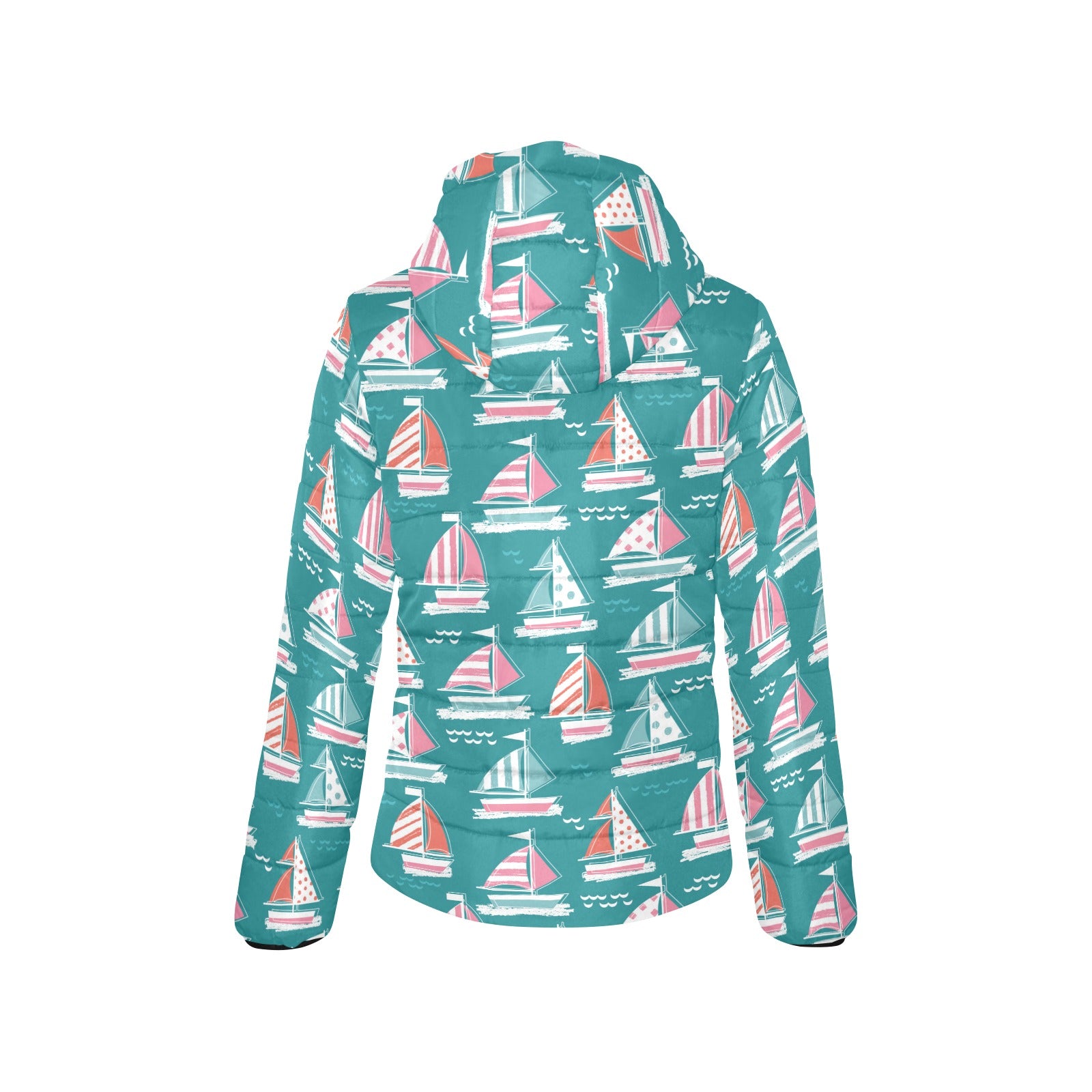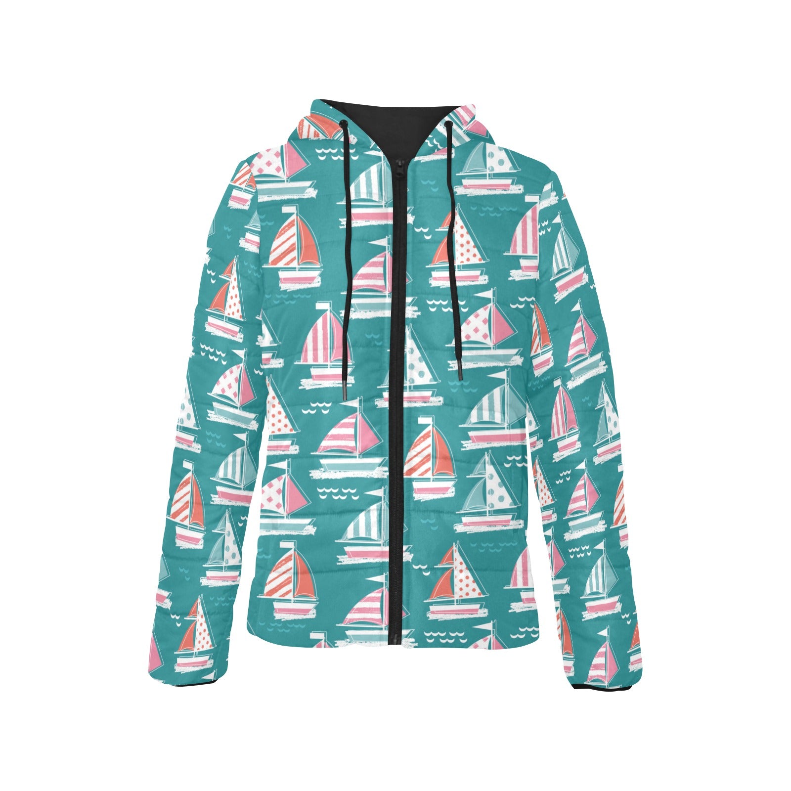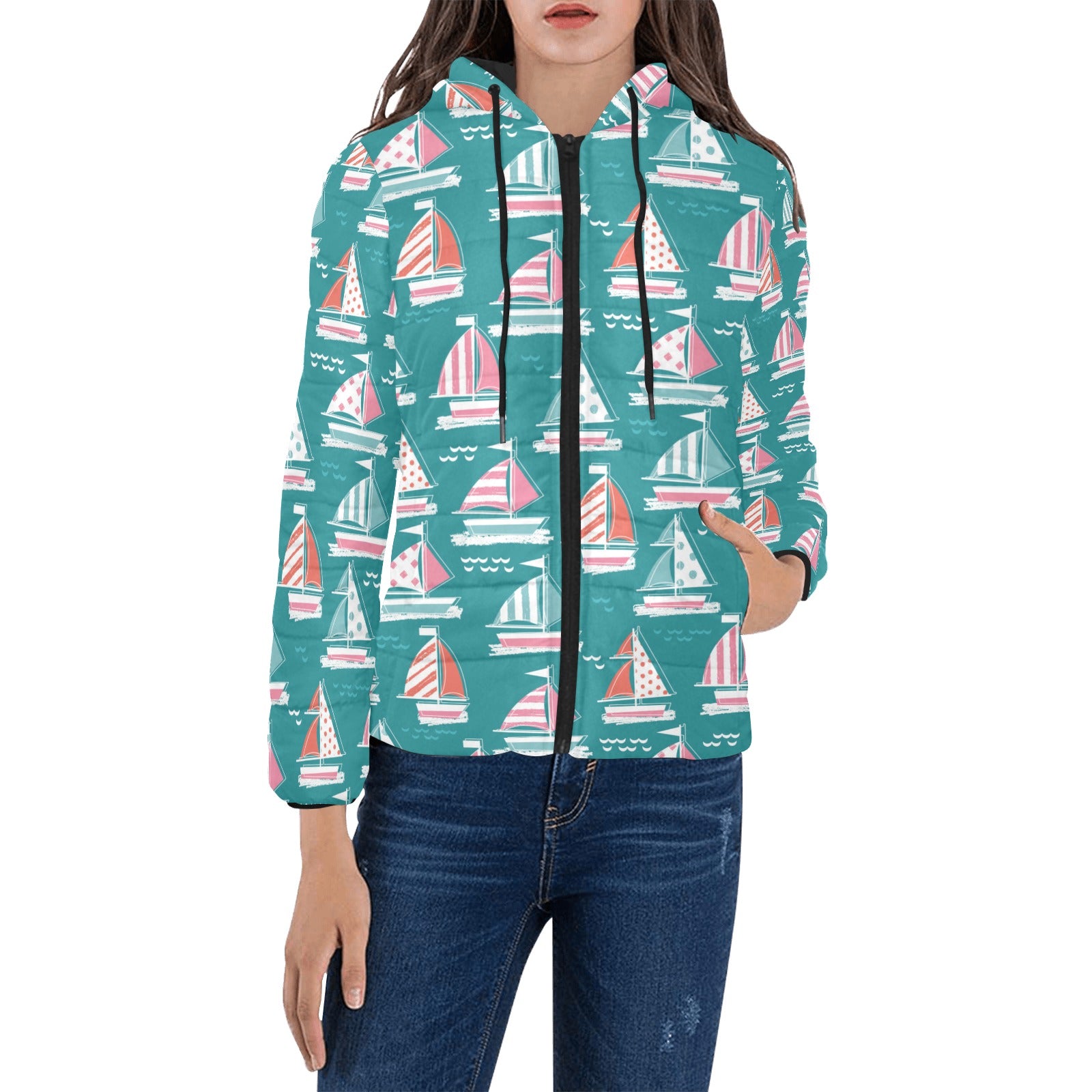 Cute sailboat pattern Women's Padded Hooded Jacket