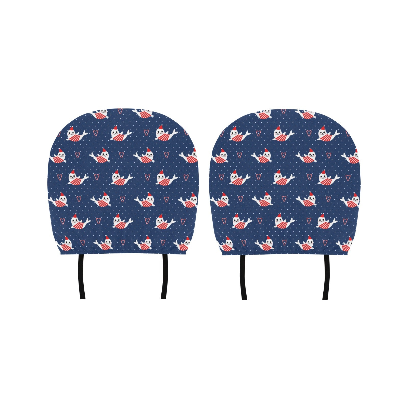 Cute sea lion seal christmas hat candy cane heart Car Headrest Cover