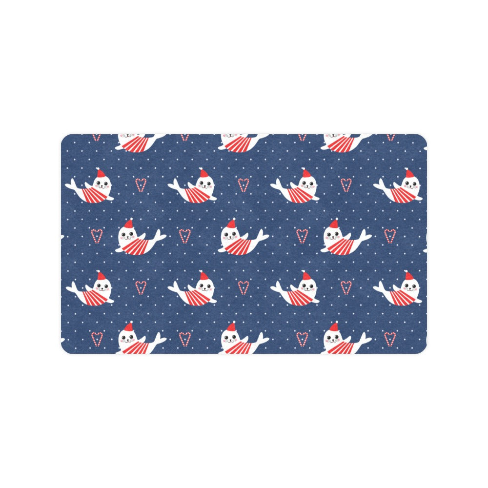 Cute sea lion seal christmas hat candy cane heart Doormat