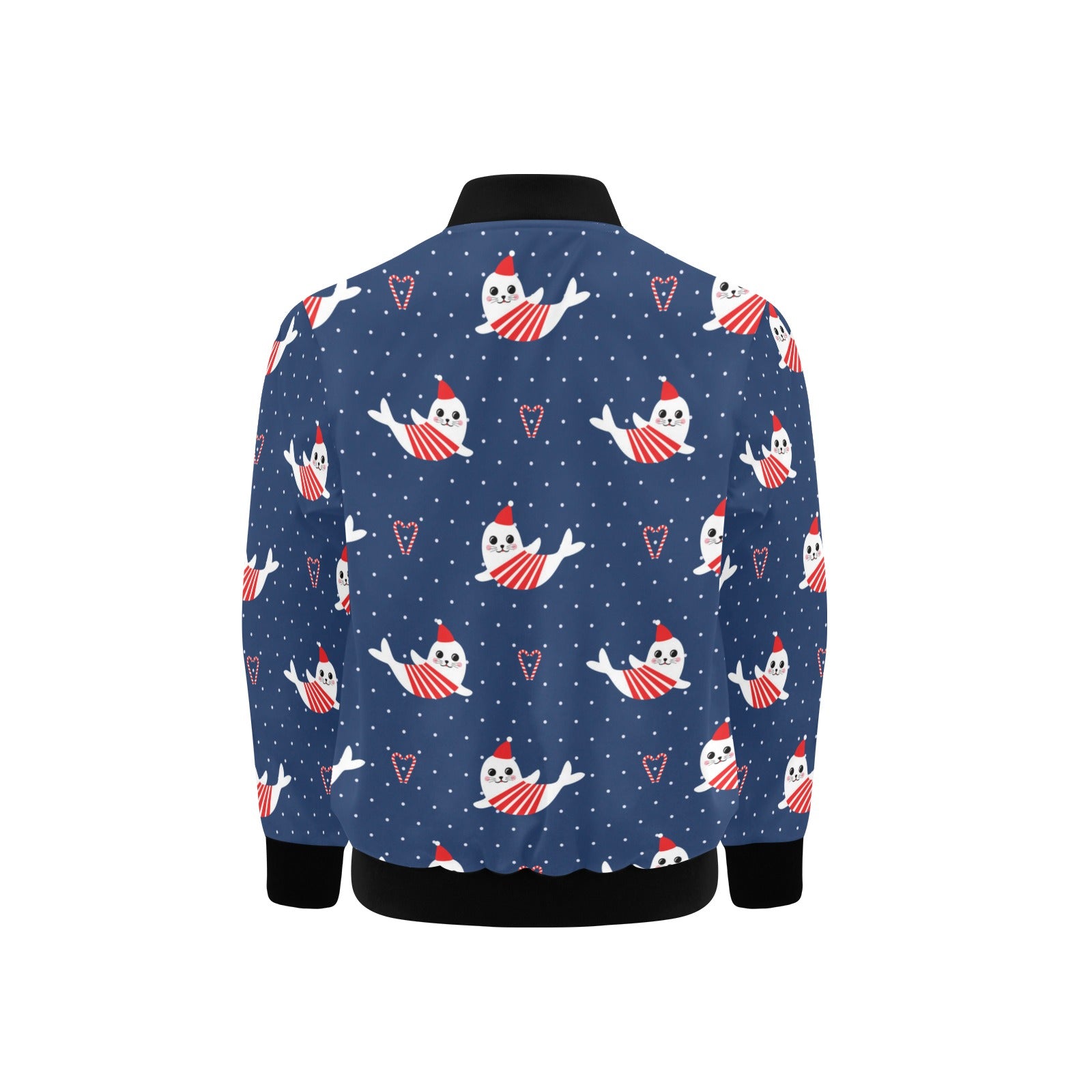 Cute sea lion seal christmas hat candy cane heart Kids' Boys' Girls' Bomber Jacket