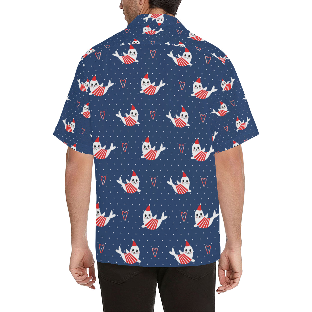 Cute sea lion seal christmas hat candy cane heart Men's All Over Print Hawaiian Shirt is a uniqued design and limited item. It made to order, hand printed, and sewn with love in our factory.
