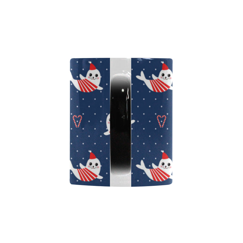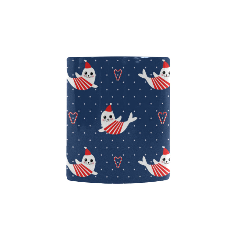 Cute sea lion seal christmas hat candy cane heart Morphing Mug Heat Changing Mug