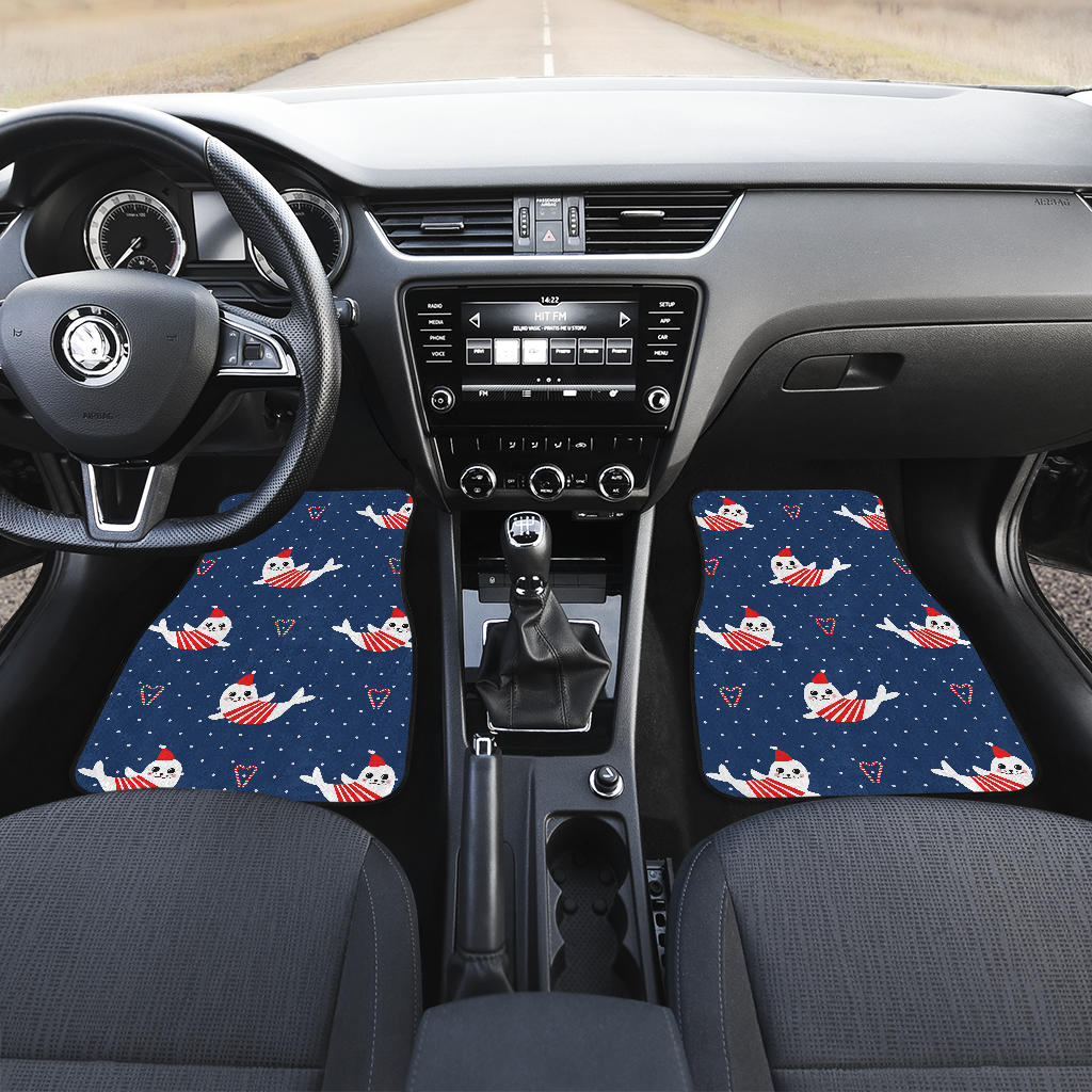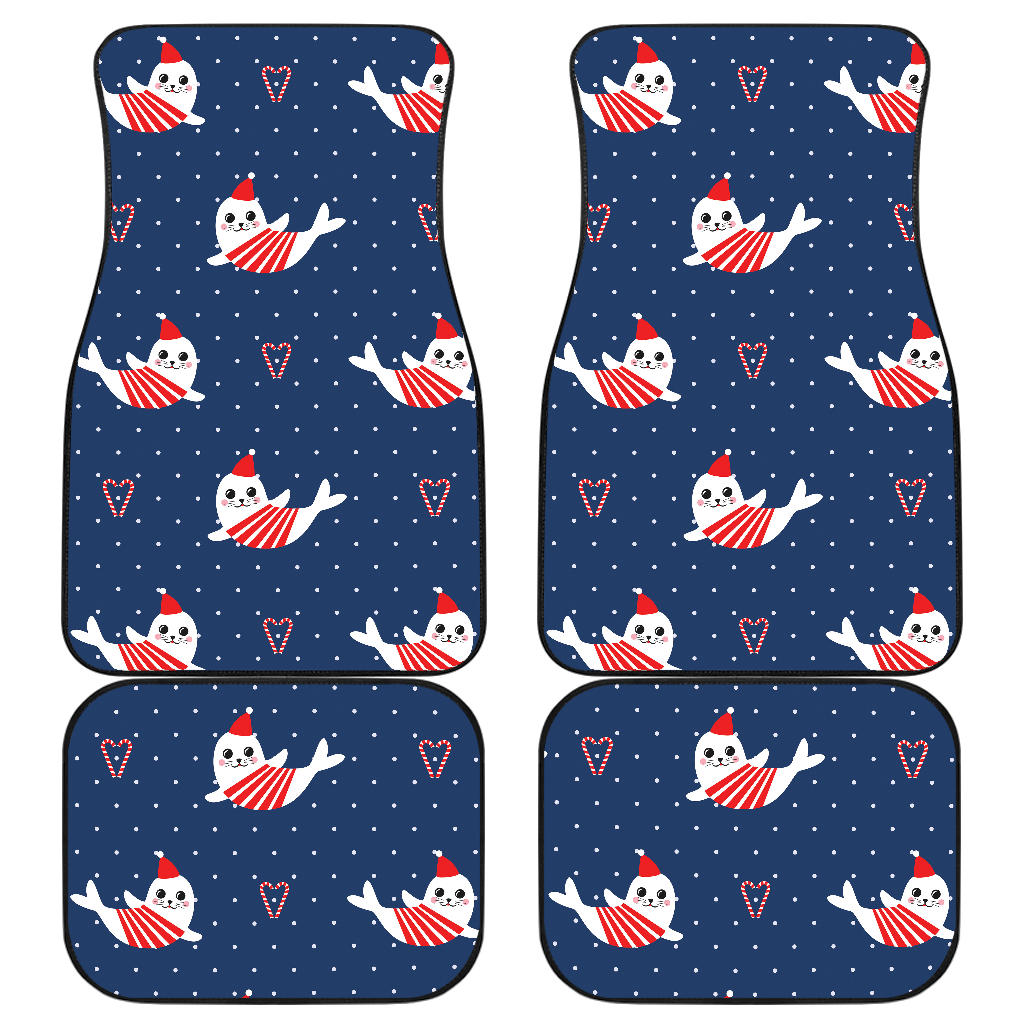 Cute Sea Lion Seal Christmas Hat Candy Cane Heart Pattern Front And Back Car Mats