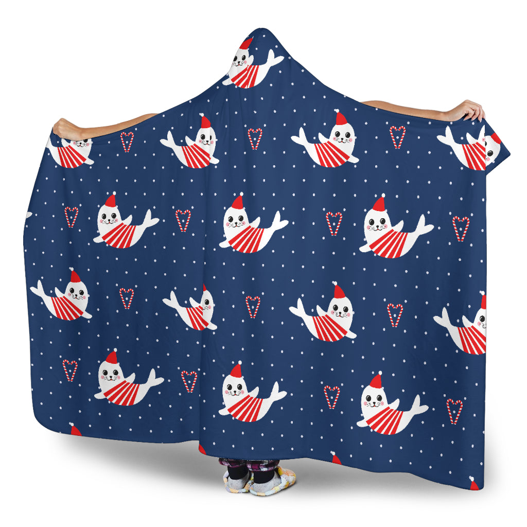 Cute sea lion seal christmas hat candy cane heart pattern Hooded Blanket are custom-made-to-order and handcrafted to the highest quality standards.