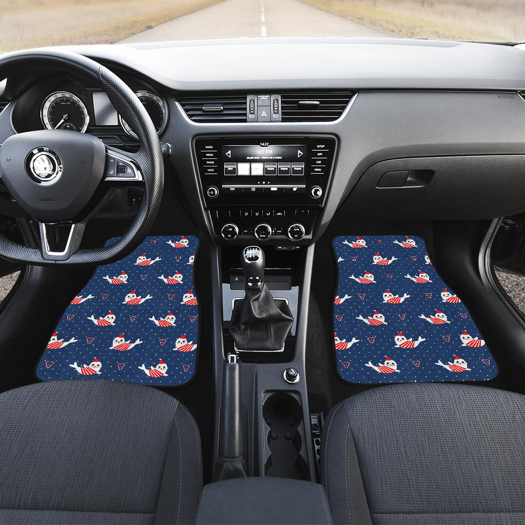 Cute Sea Lion Seal Christmas Hat Candy Cane Heart Pattern Front Car Mats