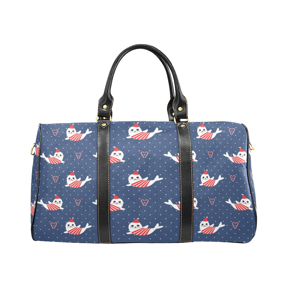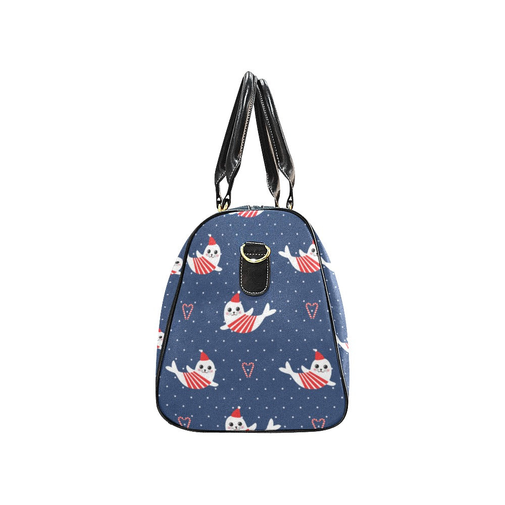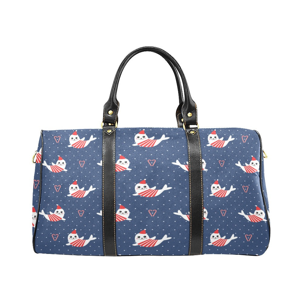 Cute sea lion seal christmas hat candy cane heart Travel Bag