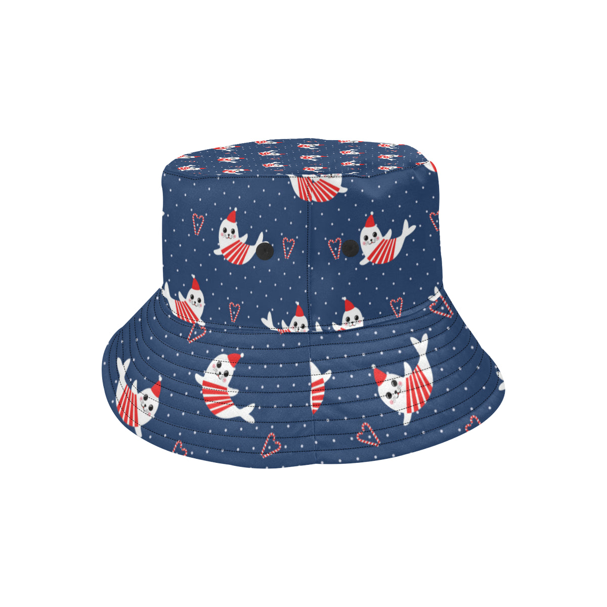 Cute sea lion seal christmas hat candy cane heart Unisex Bucket Hat
