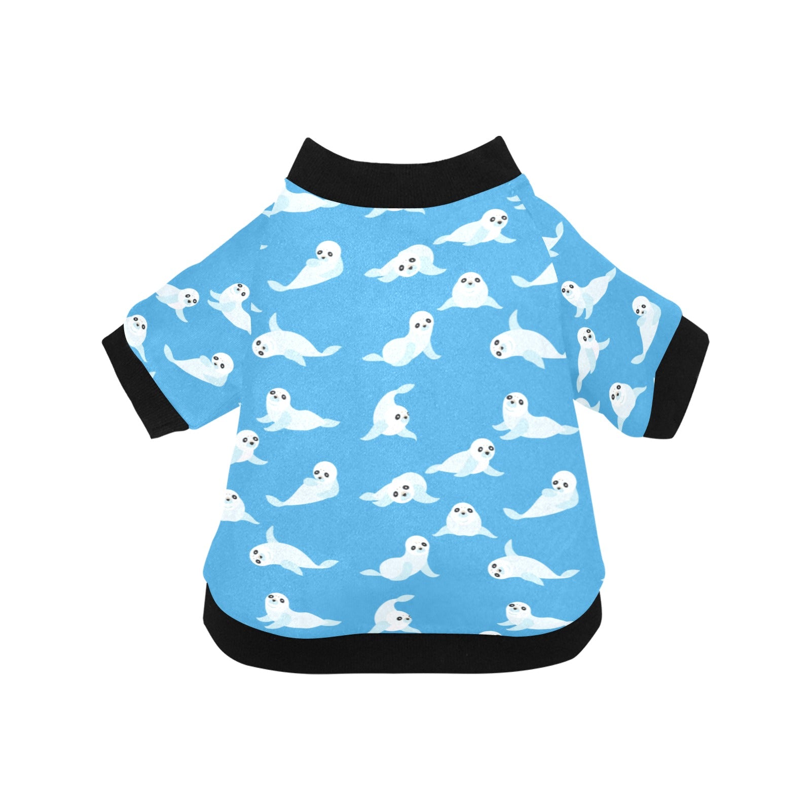 Cute sea lion seal pattern background All Over Print Pet Dog Round Neck Fuzzy Shirt