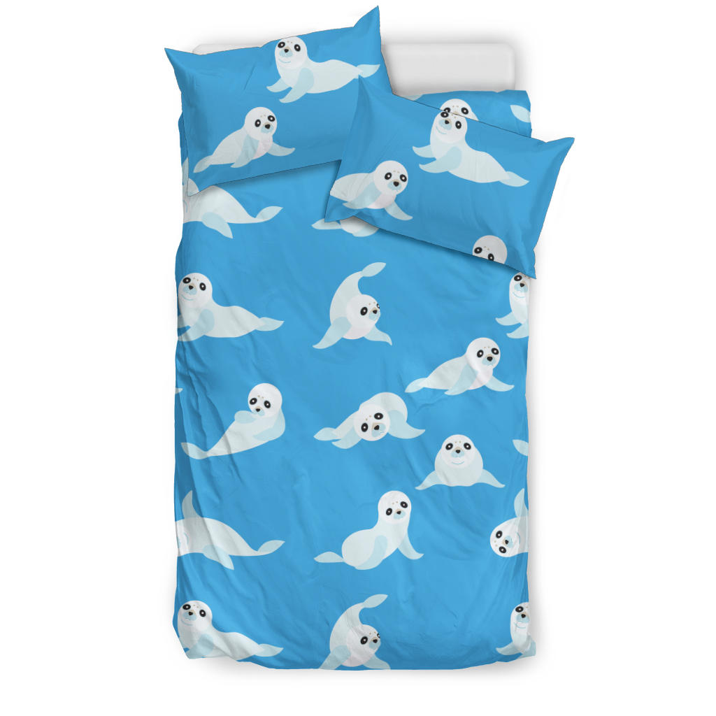 Cute Sea Lion Seal Pattern Background Bedding Set