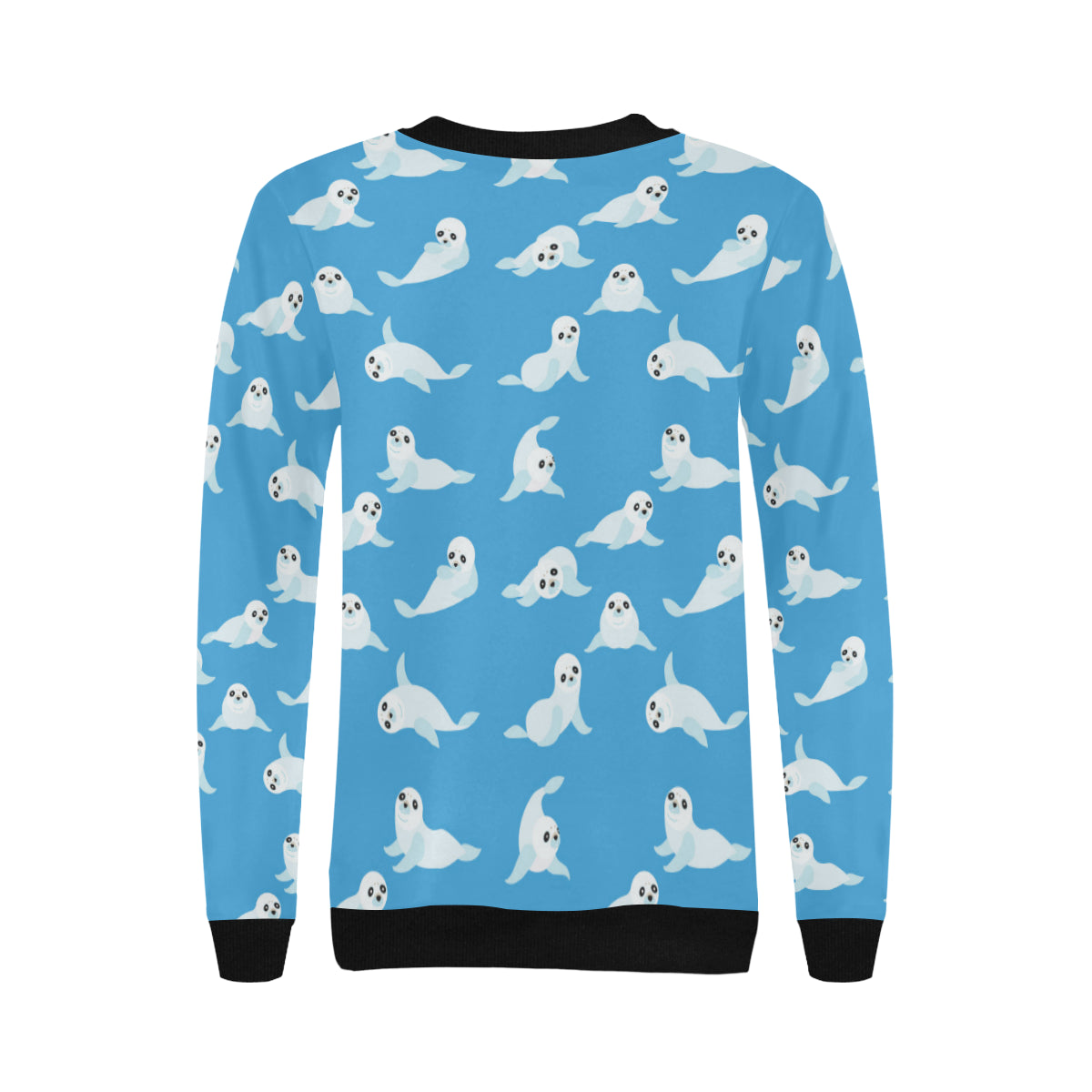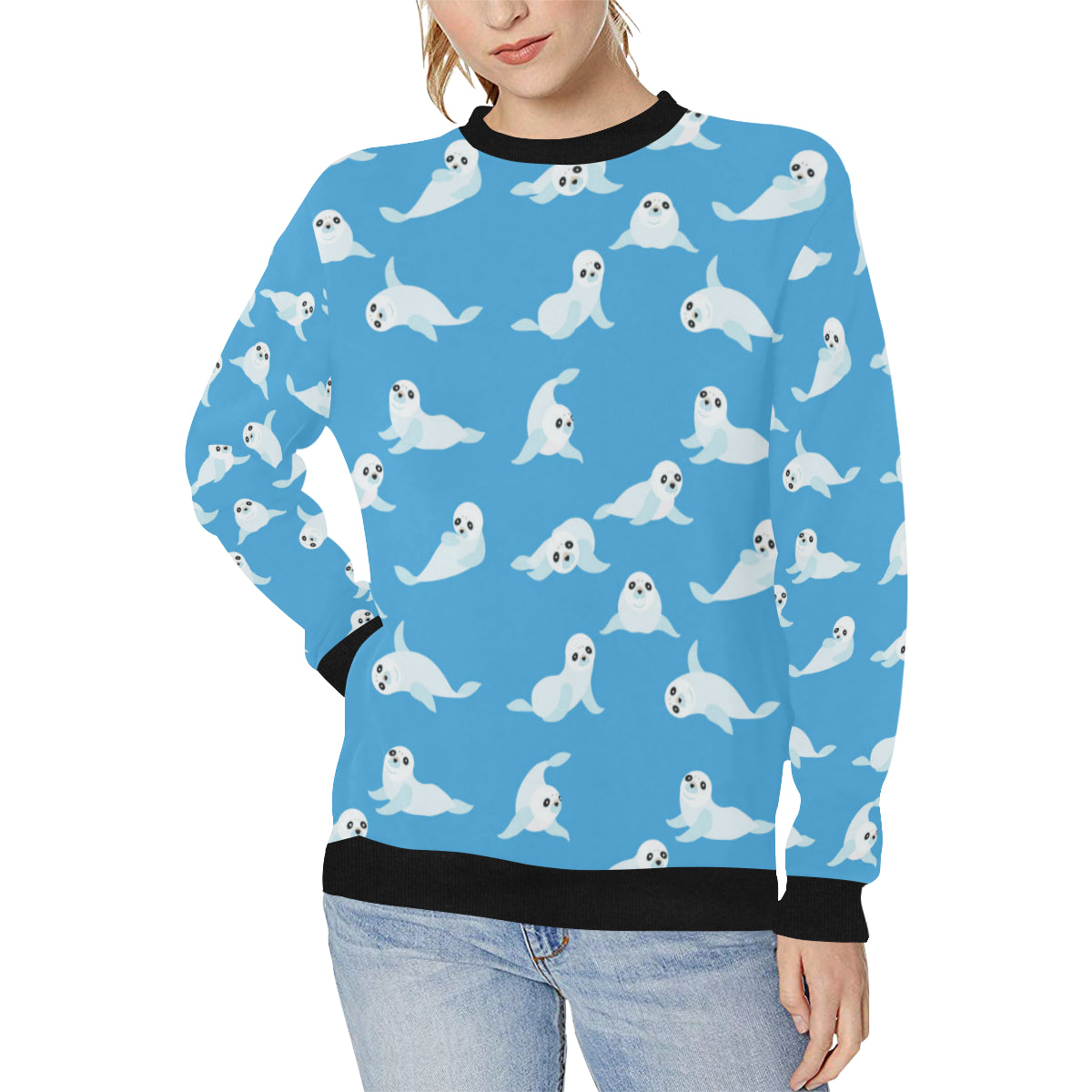 Cute sea lion seal pattern background Women's Crew Neck Sweatshirt