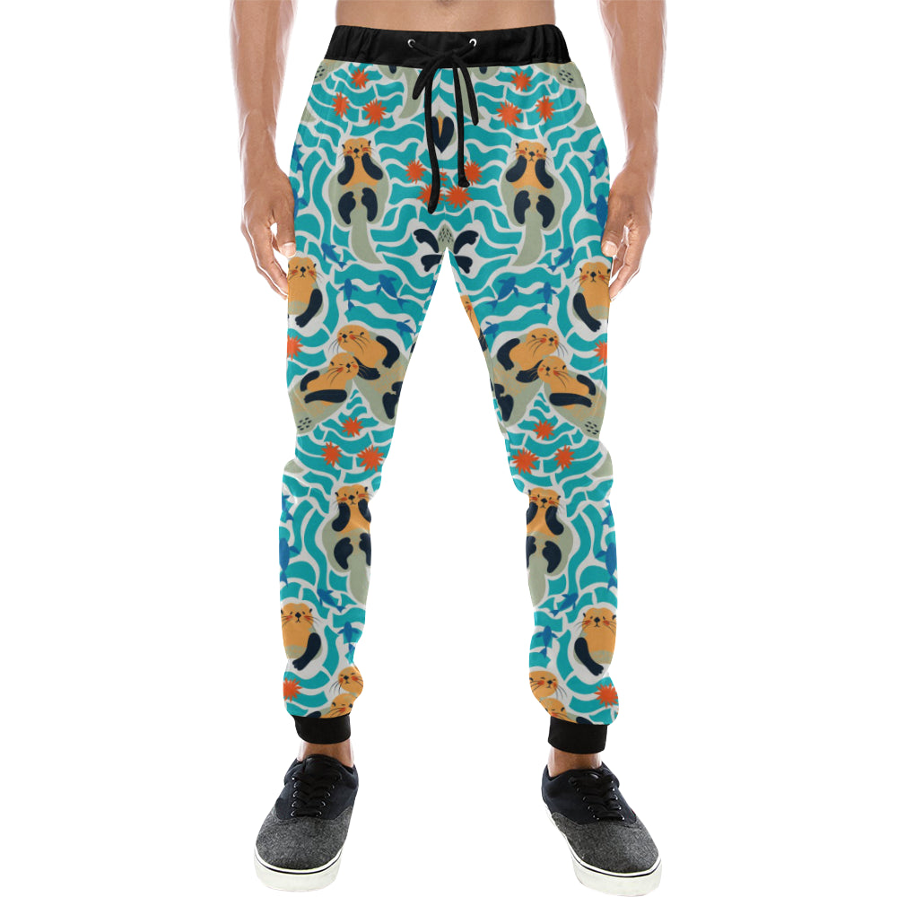 Cute sea otters fishe sea urchin pattern Unisex Casual Sweatpants