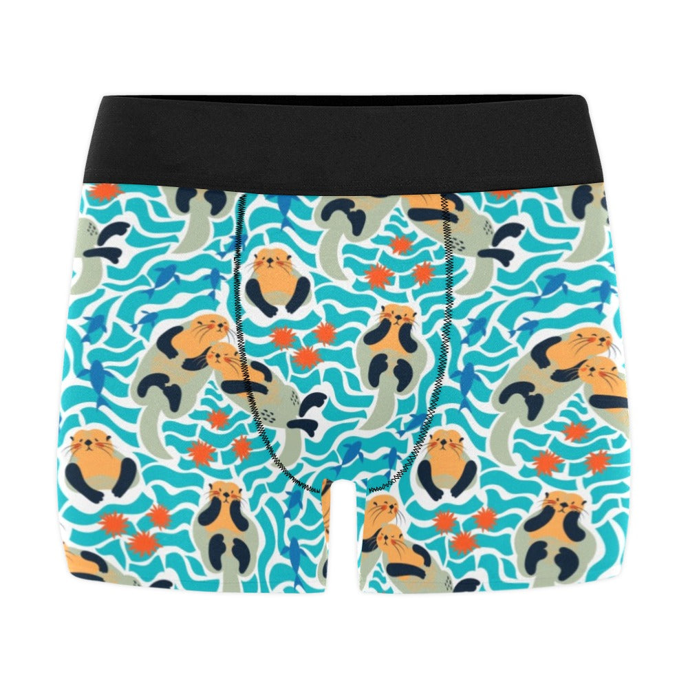 Cute sea otters fishe sea urchin pattern Men's All Over Print Boxer Briefs Men's Underwear