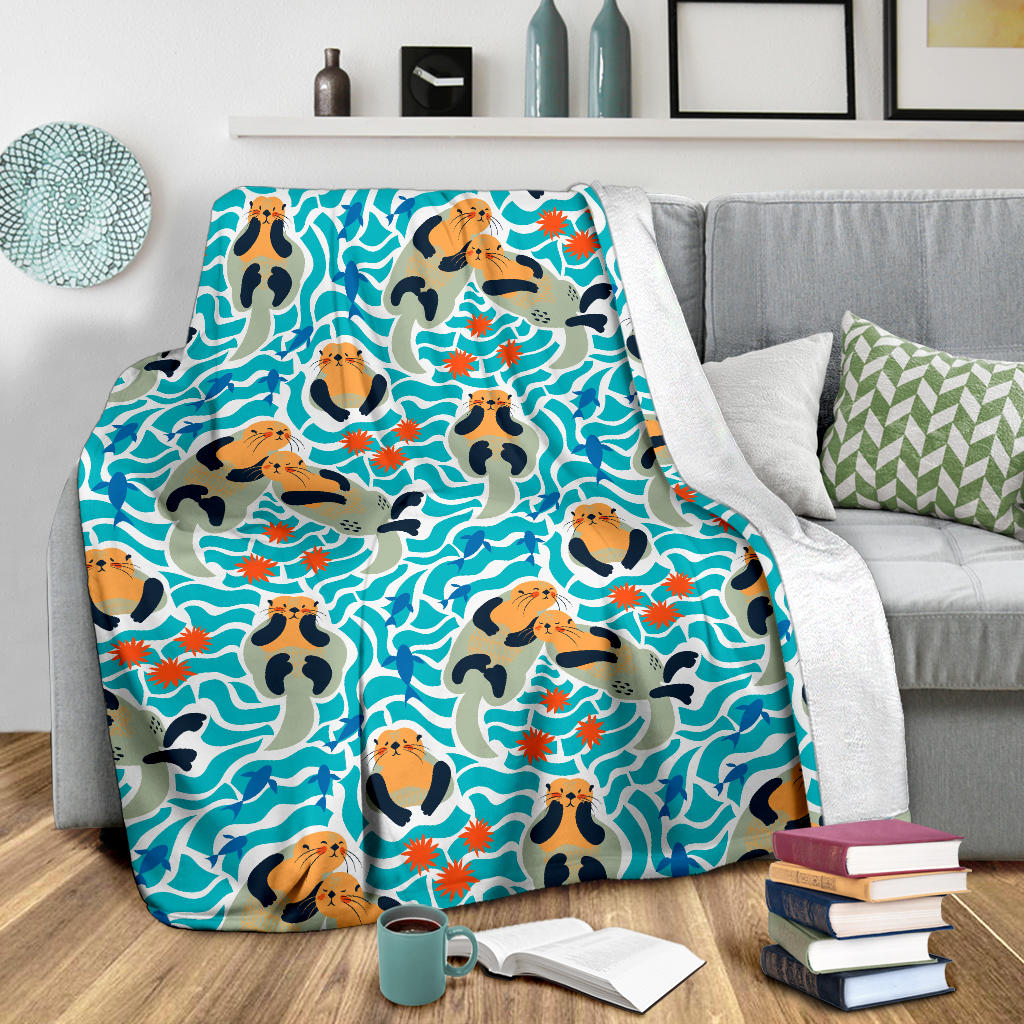 Cute sea otters fishe sea urchin pattern Premium Blanket is a uniqued design and limited item. It made to order, hand printed, and sewn with love in our factory.