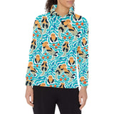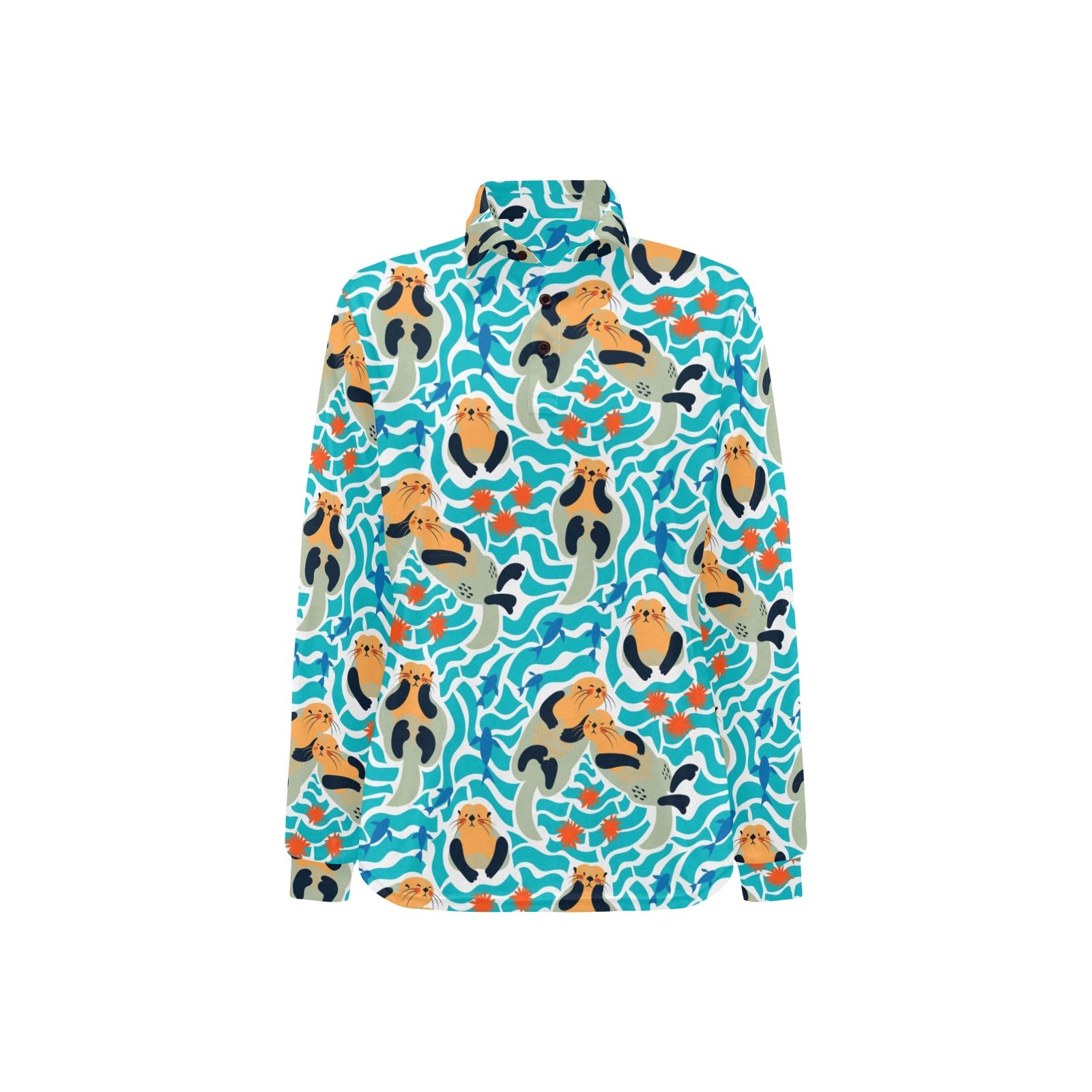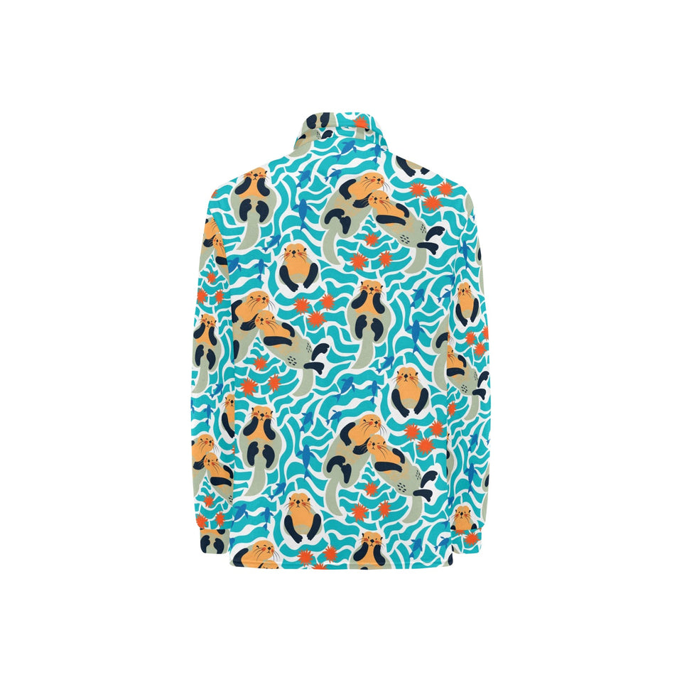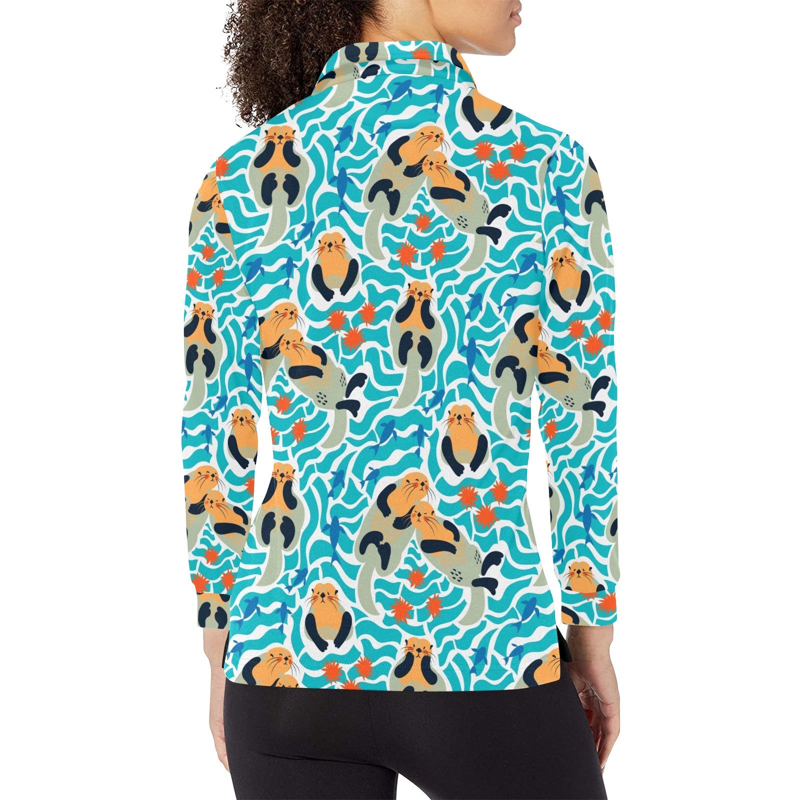 Cute sea otters fishe sea urchin pattern Women's Long Sleeve Polo Shirt