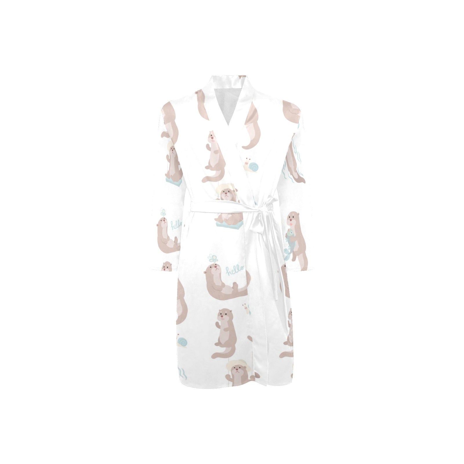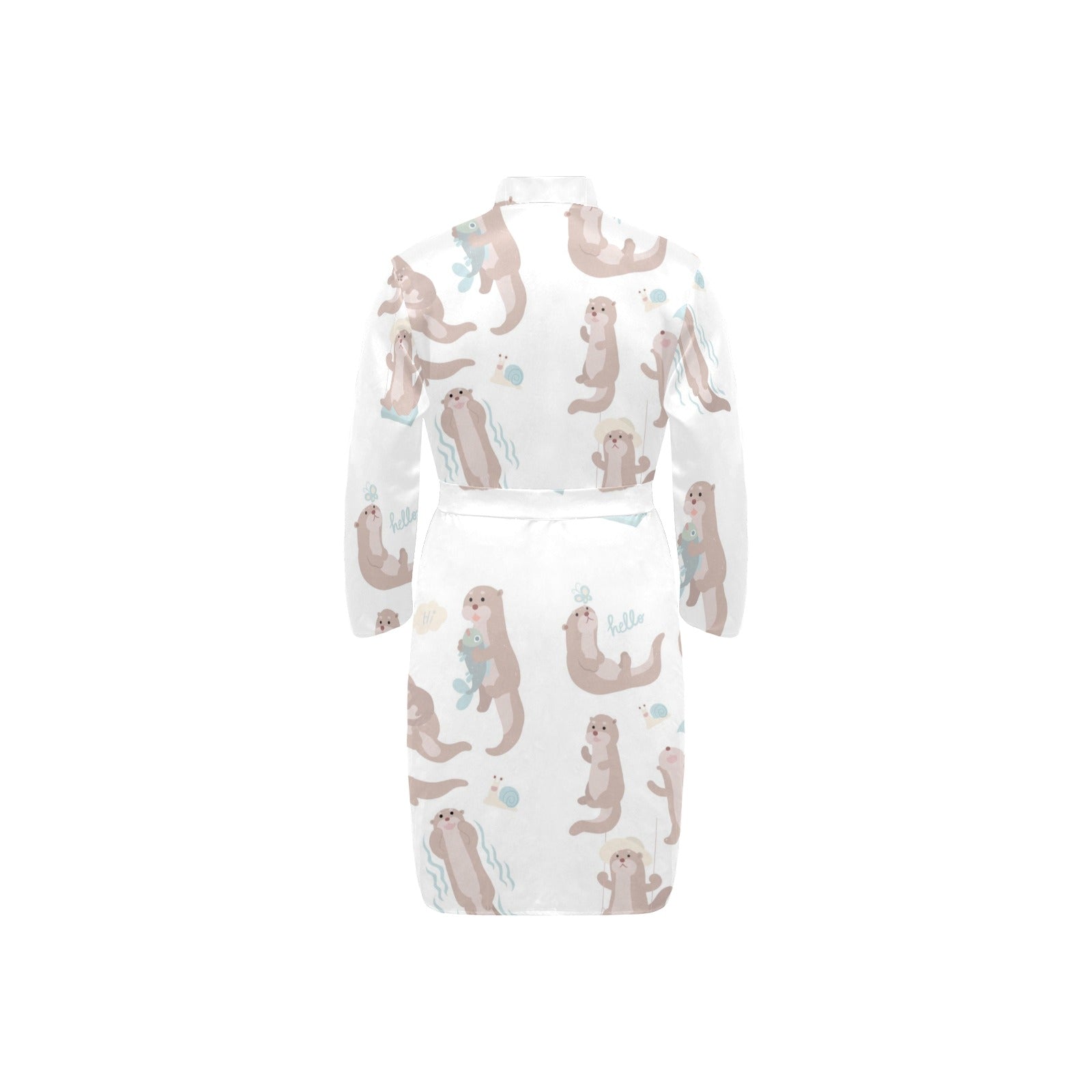 Cute sea otters pattern Men's Long Sleeve Belted Night Robe