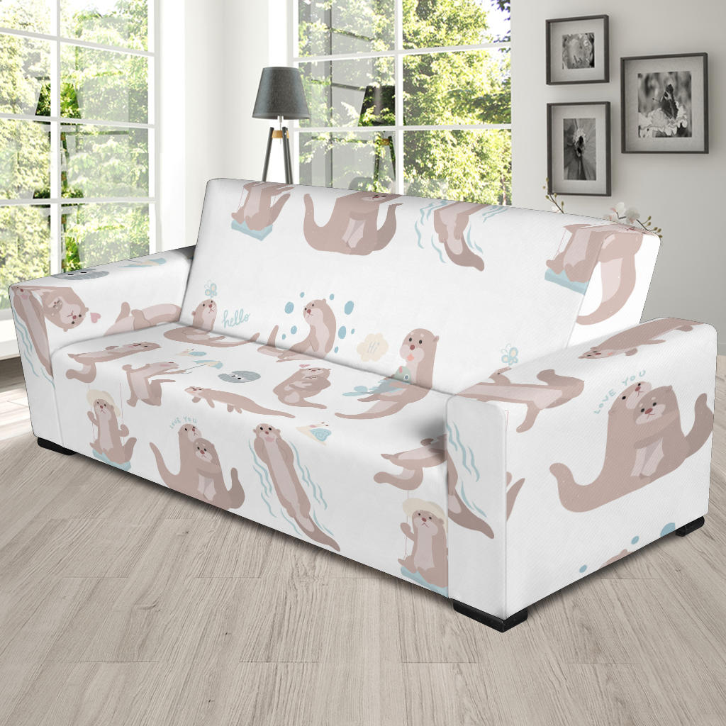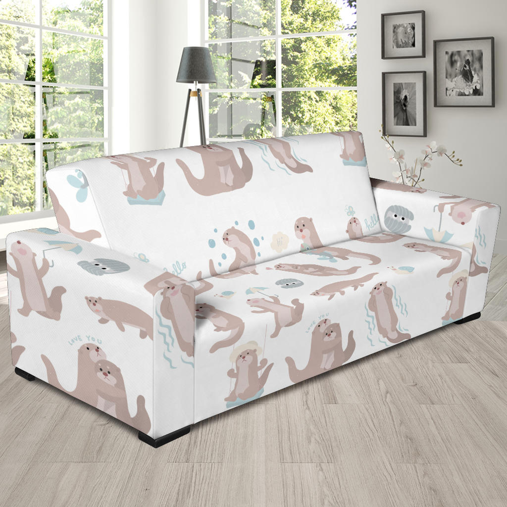 Cute Sea Otters Pattern Sofa Slipcover