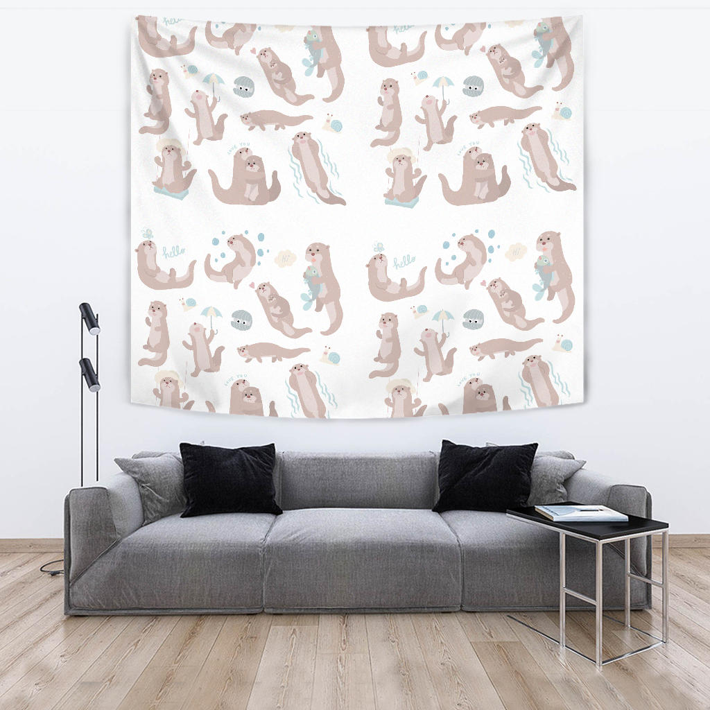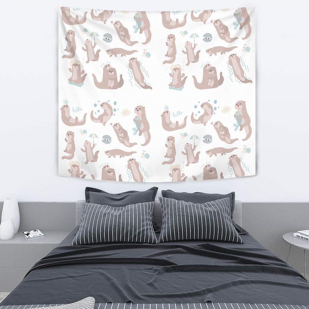 Cute sea otters pattern Tapestry is a uniqued design and limited item. It made to order, hand printed, and sewn with love in our factory.