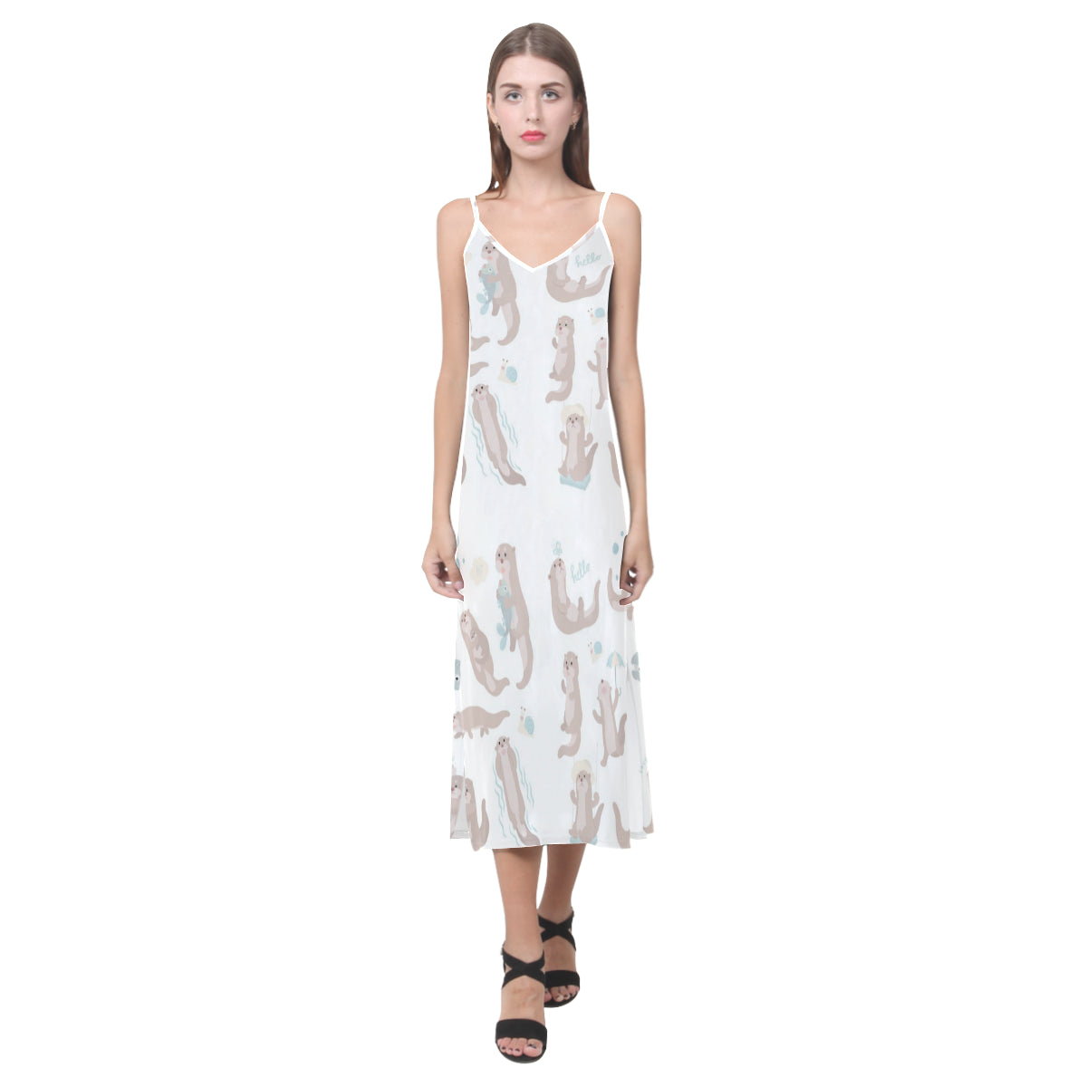 Cute sea otters pattern V-Neck Open Fork Long Dress