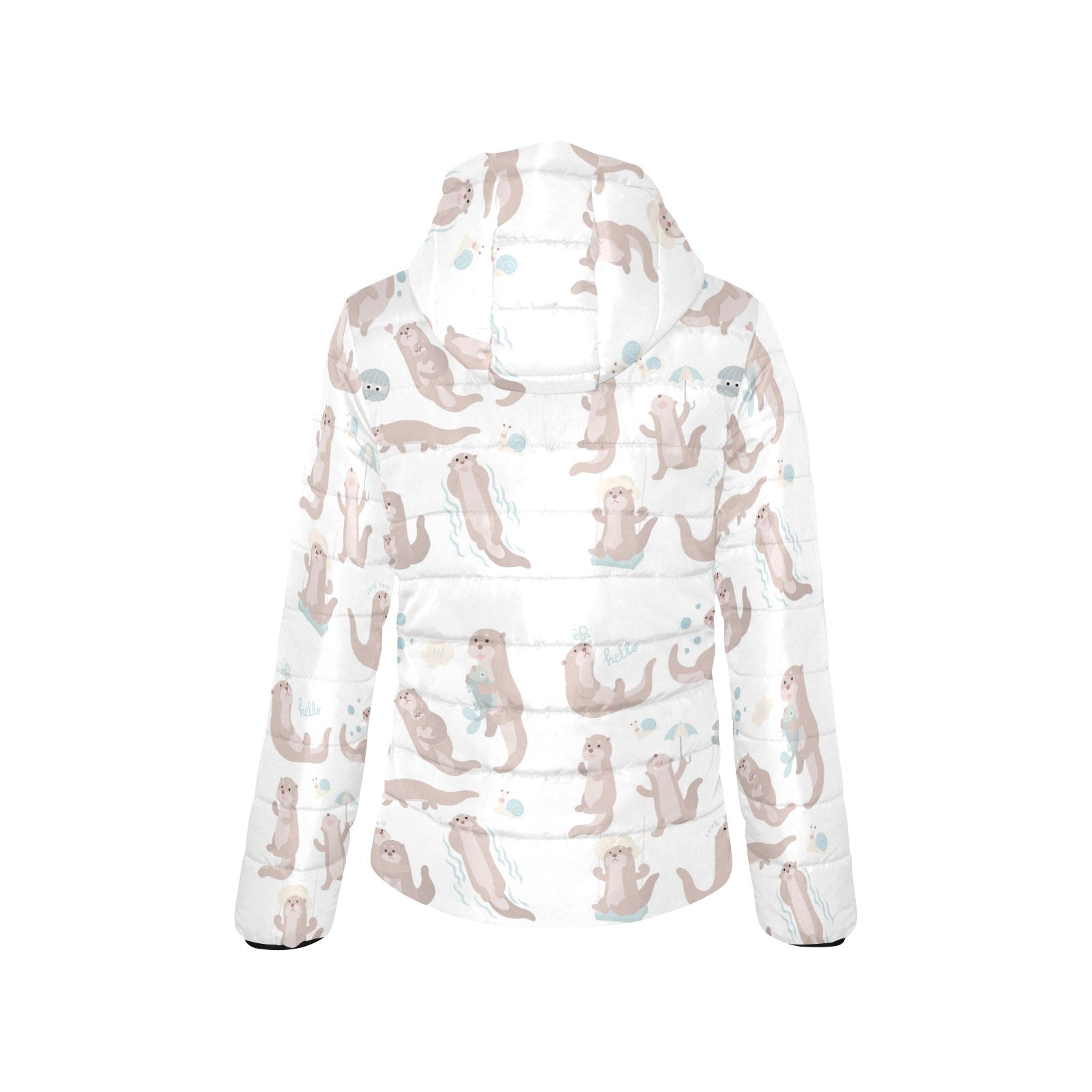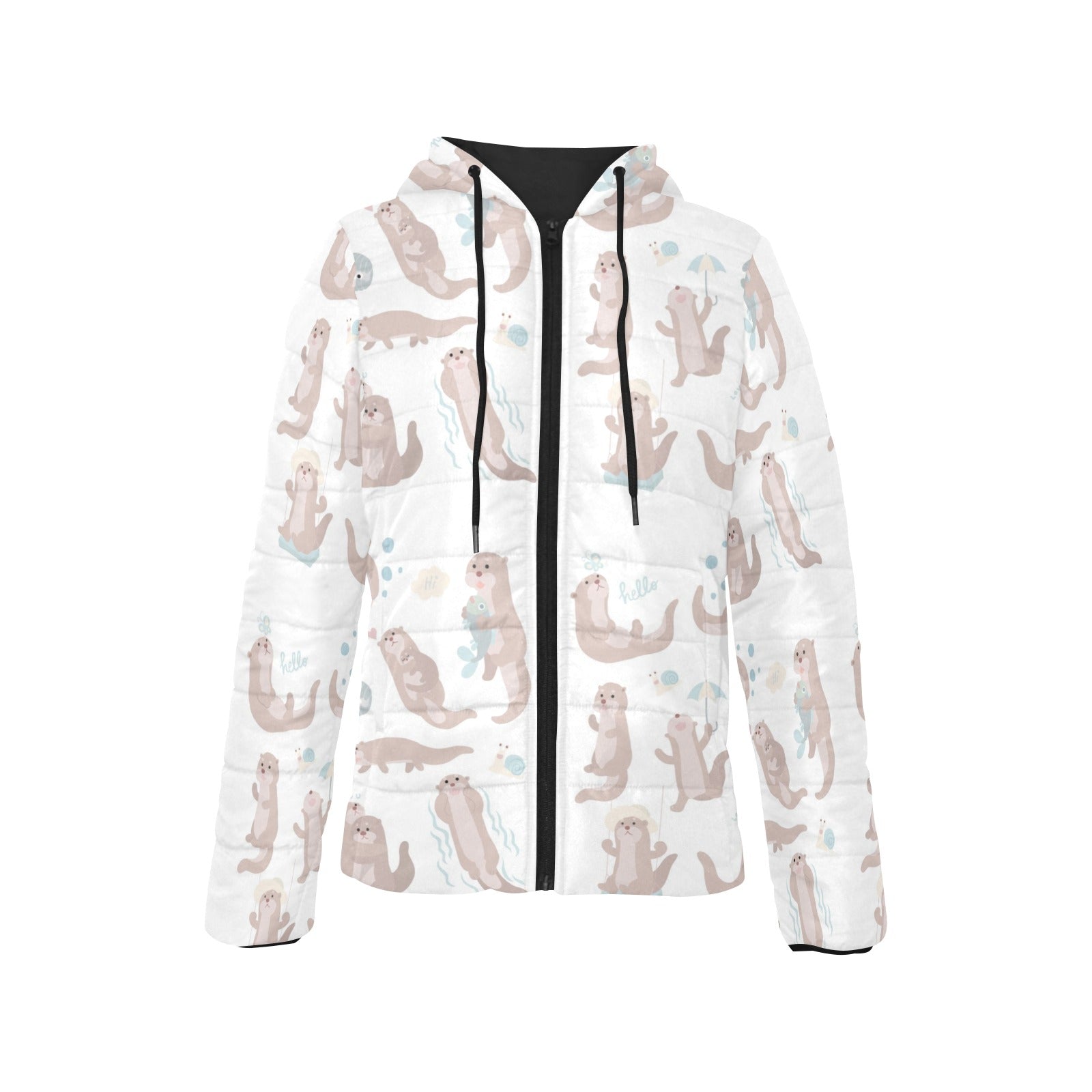 Cute sea otters pattern Women's Padded Hooded Jacket