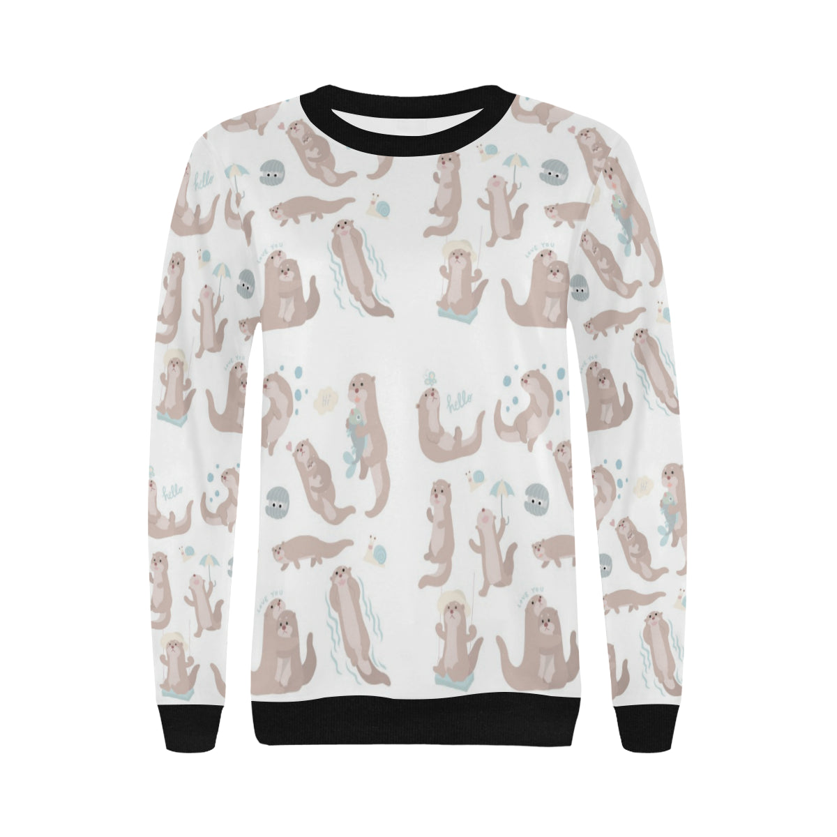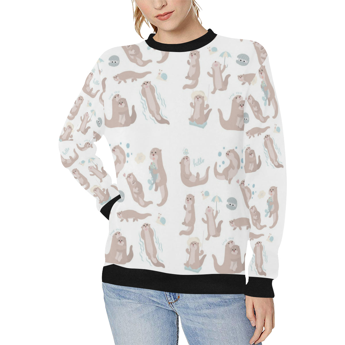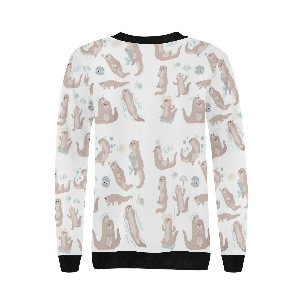 Cute sea otters pattern Women's Crew Neck Sweatshirt