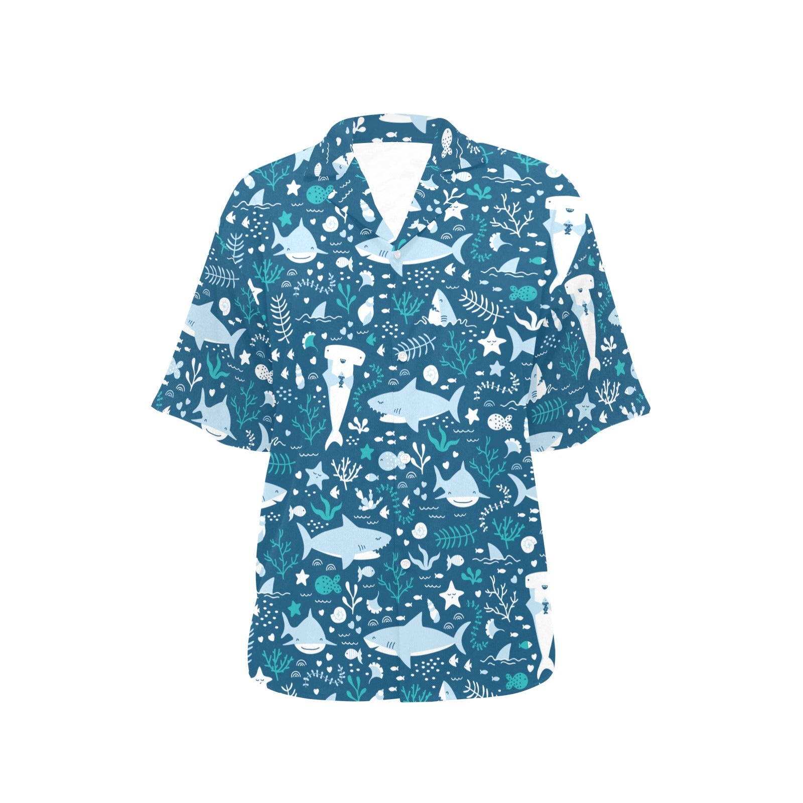 Cute shark pattern Women's All Over Print Hawaiian Shirt