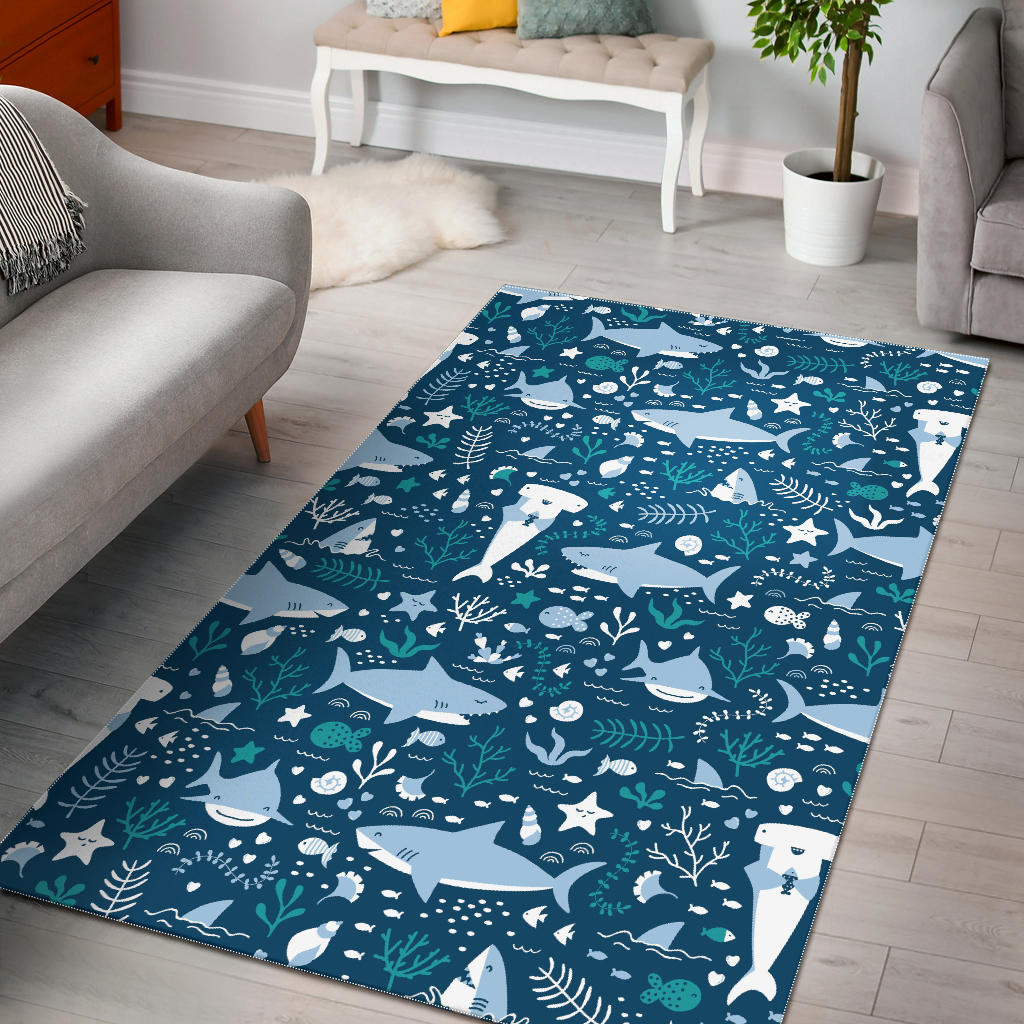 Cute shark pattern Area Rug is a uniqued design and limited item. It made to order, hand printed, and sewn with love in our factory.
