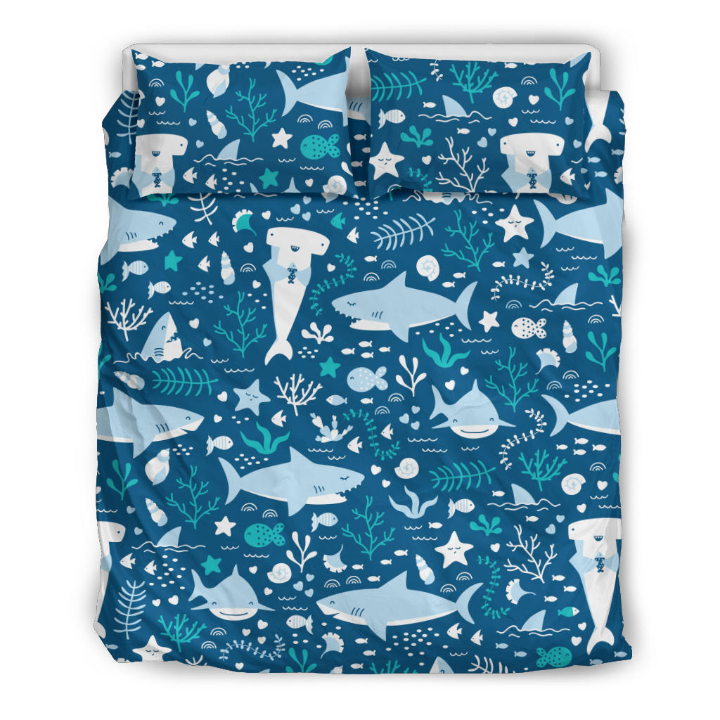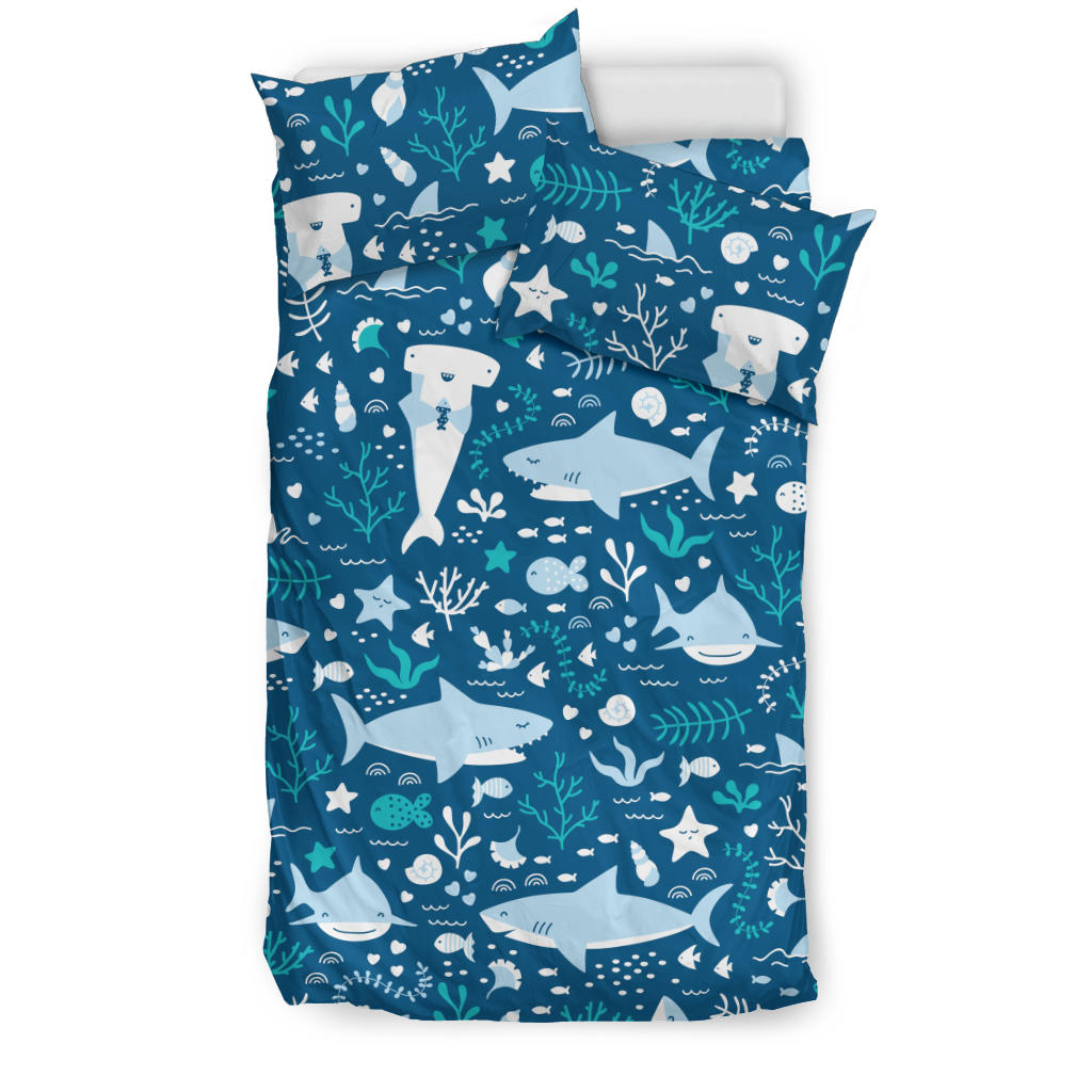 Cute shark pattern Bedding Set is a uniqued design and limited item. It made to order, hand printed, and sewn with love in our factory.