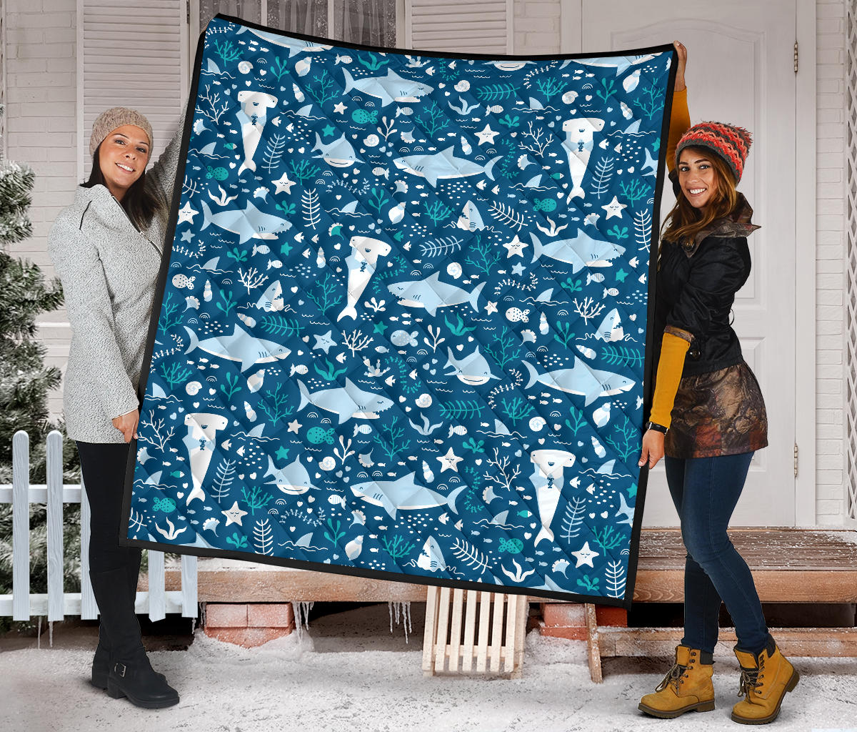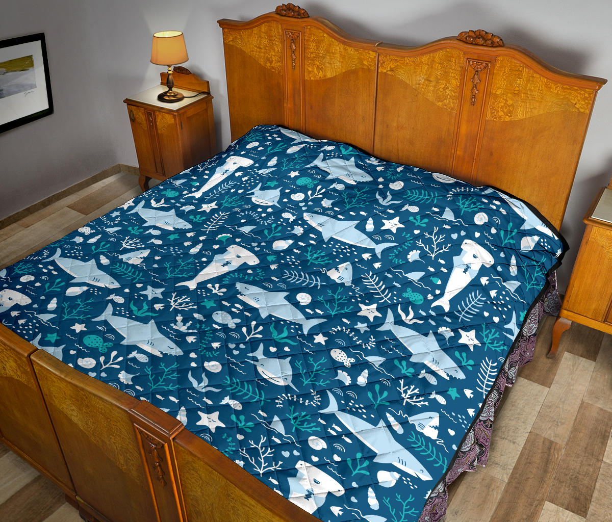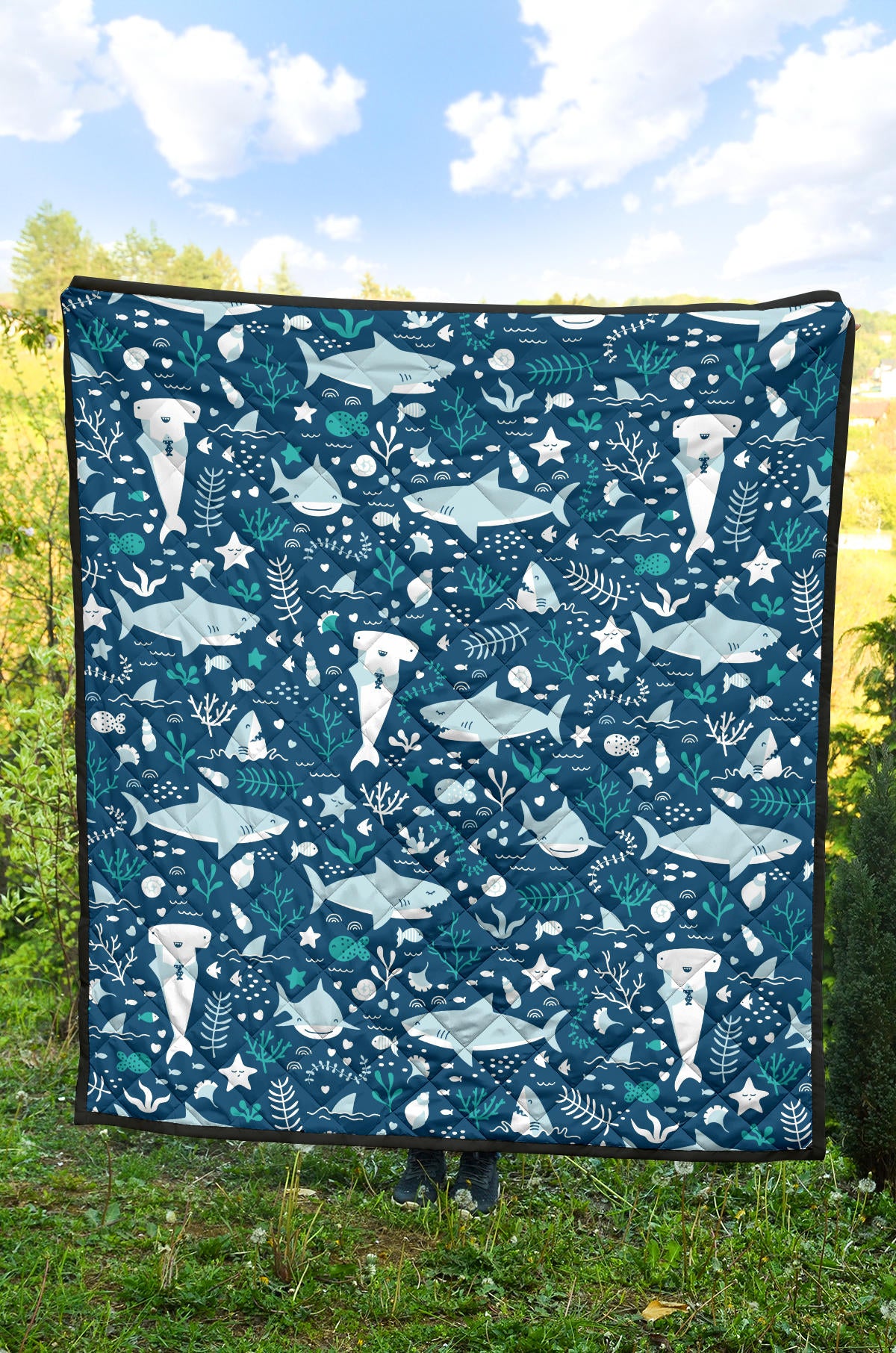 Cute Shark Pattern Premium Quilt is a uniqued design and limited item. It made to order, hand printed, and sewn with love in our factory.