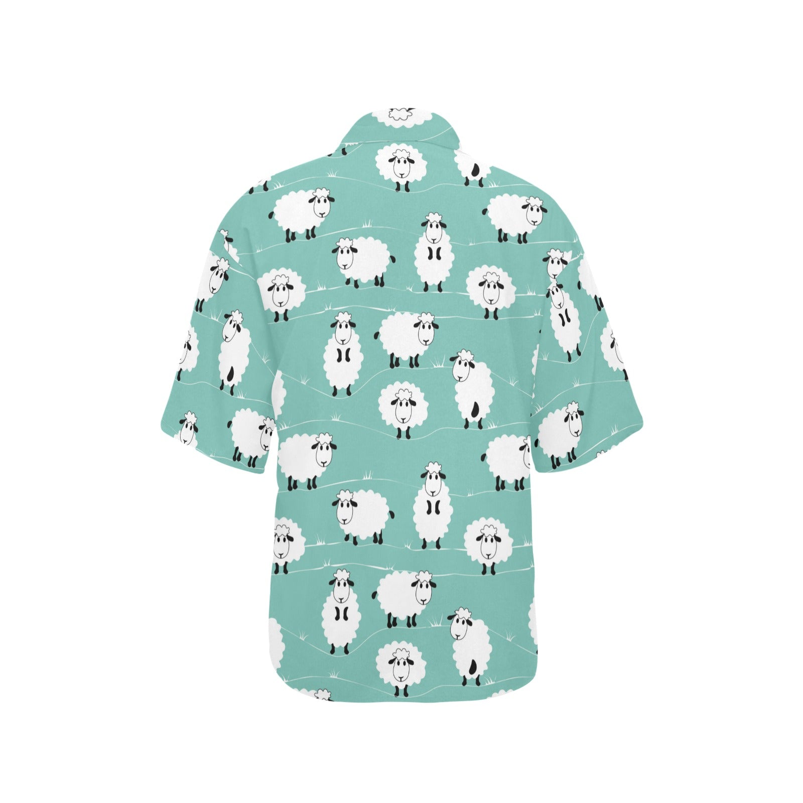 Cute sheep green background Women's All Over Print Hawaiian Shirt