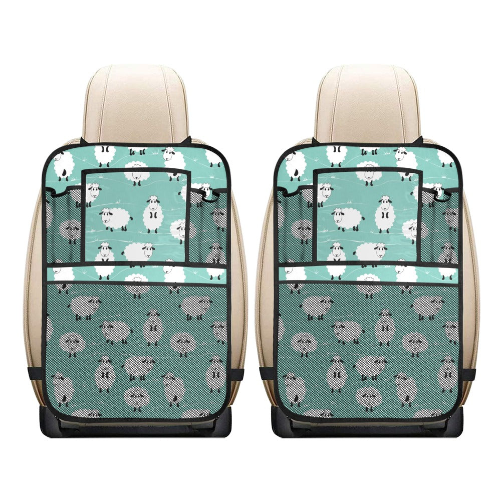 Cute sheep green background Car Seat Back Organizer