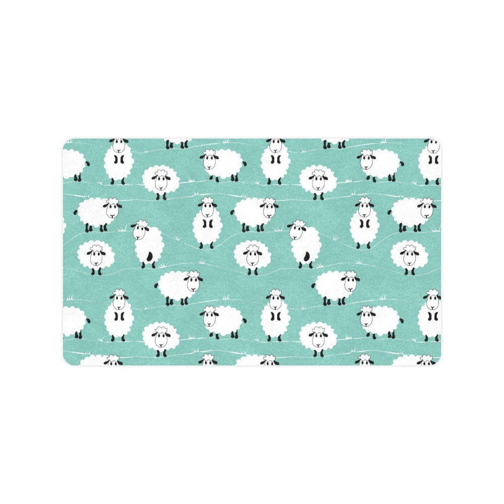 Cute sheep green background Doormat