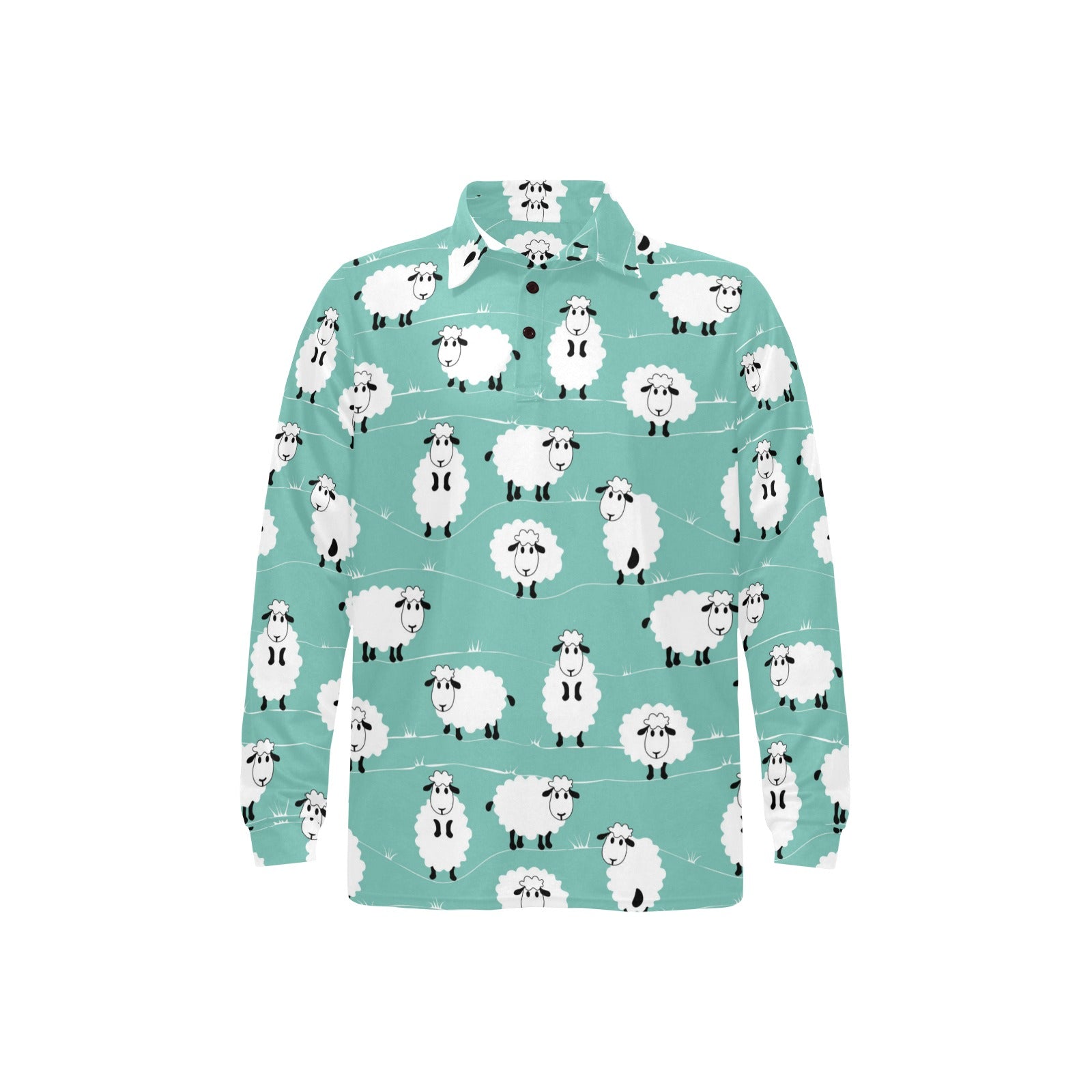 Cute sheep green background Men's Long Sleeve Polo Shirt