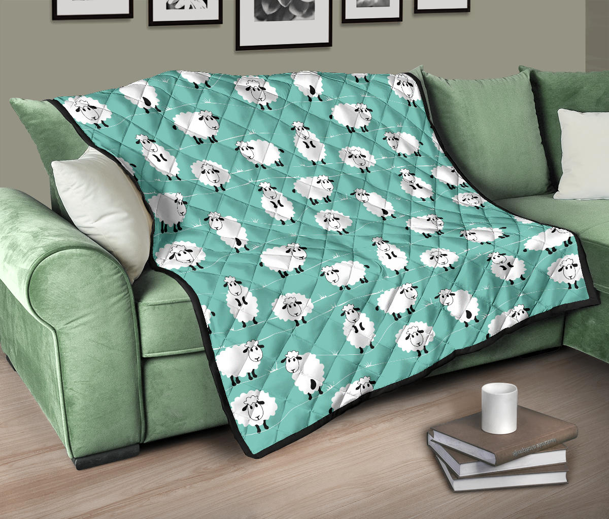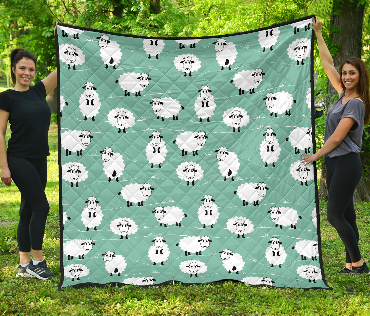 Cute Sheep Green Background Premium Quilt is a uniqued design and limited item. It made to order, hand printed, and sewn with love in our factory.